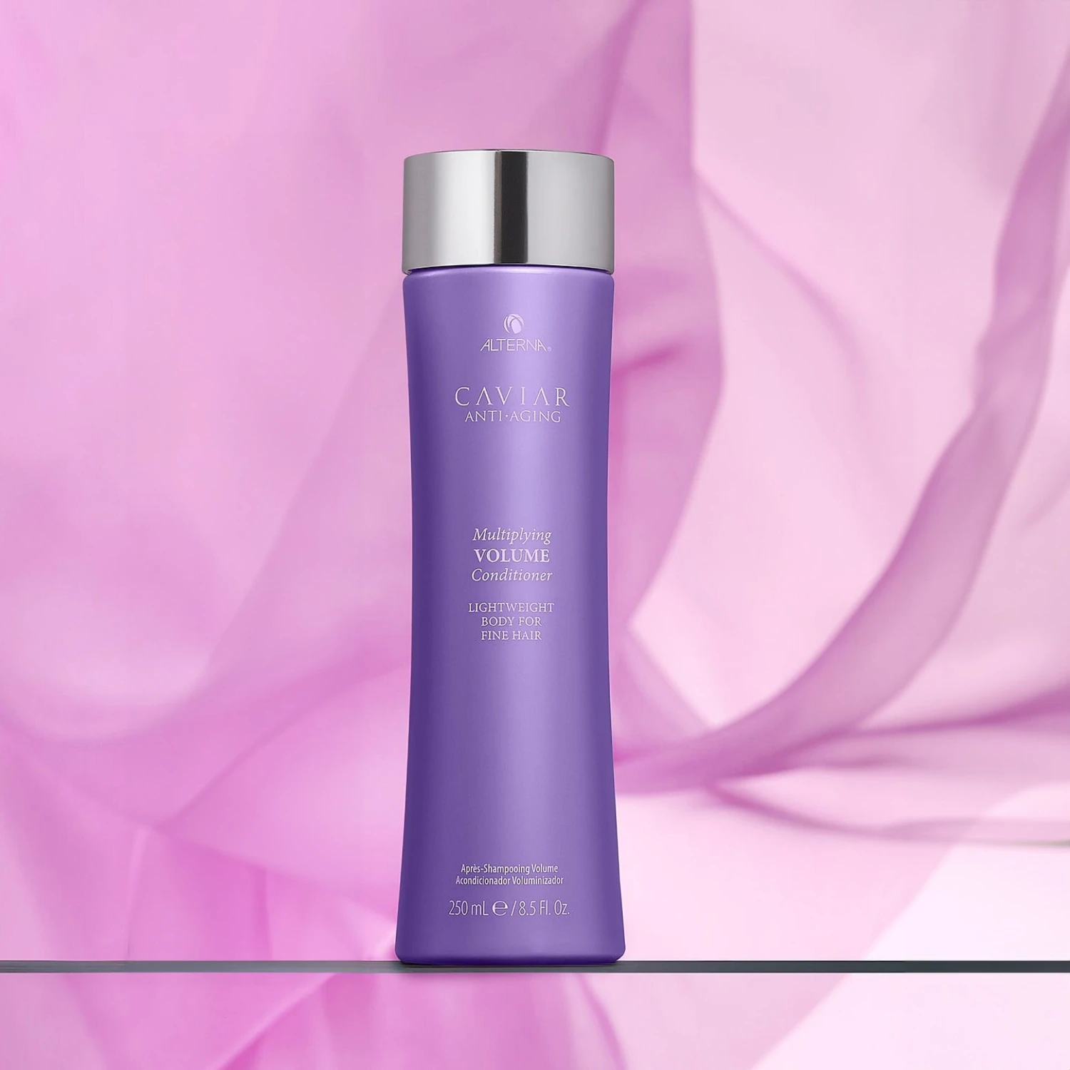 Alterna Caviar Anti-Aging Multiplying Volume Conditioner is a rich conditioner that helps to seal in moisture, give lasting body, and lightweight moisture. Formulated with Caviar Extract and Alterna’s volume-building Marine Plumping Complex, this formula helps fine, limp hair have fullness, body, and lightweight volume while retaining hair’s moisture. By helping hair to retain light moisture, this nourishing conditioner helps to leave hair with a healthy-looking sheen.