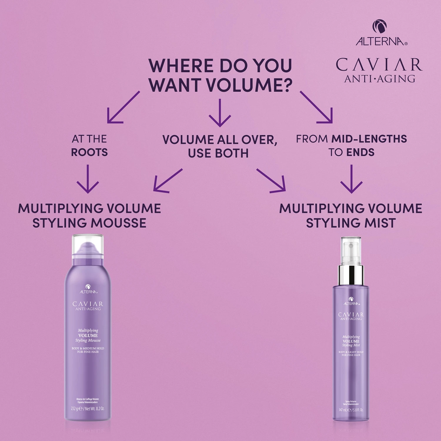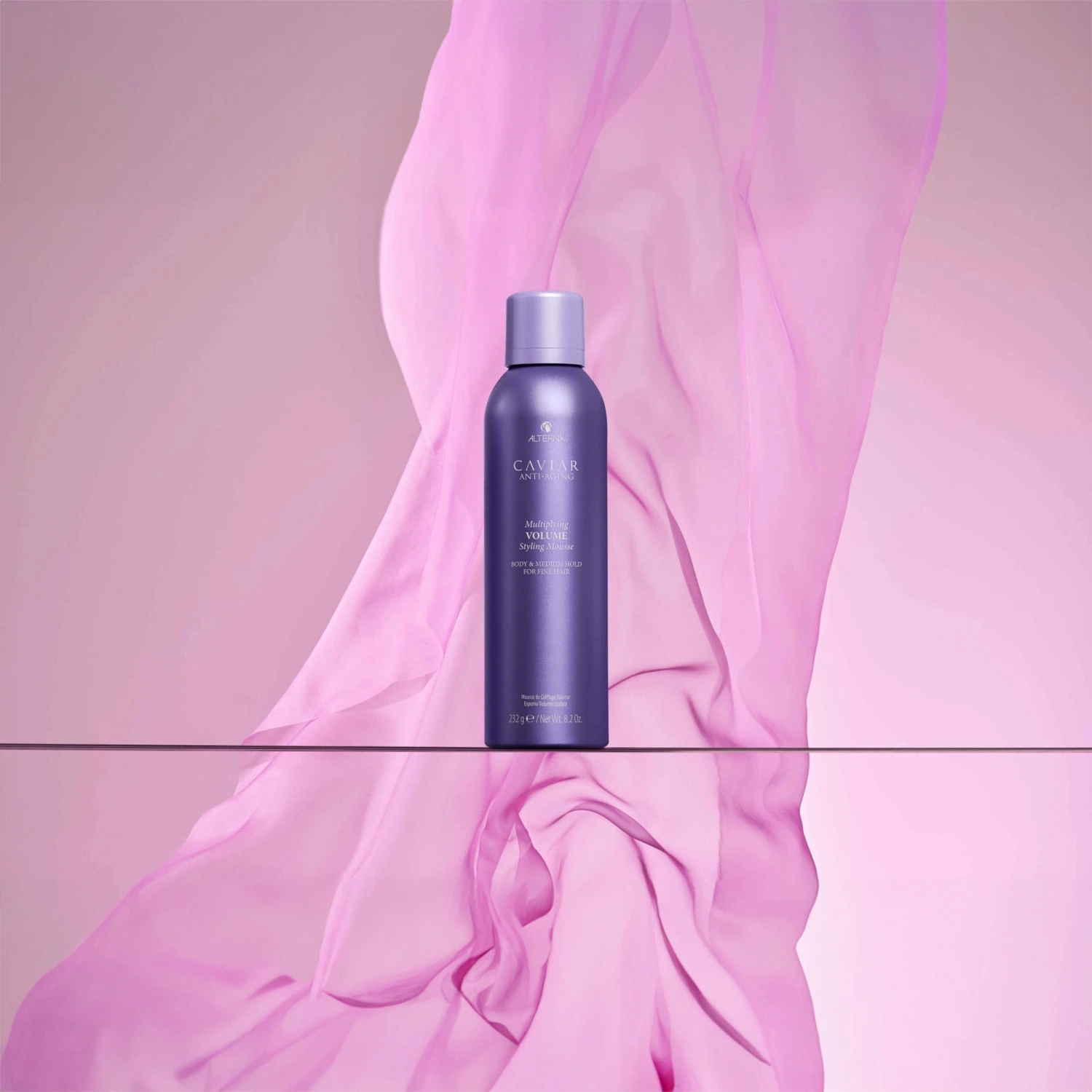 Alterna Caviar Anti-Aging Multiplying Volume Styling Mousse is a lightweight treatment styling mousse that helps to thicken and strengthen hair. Formulated with luxurious Caviar extract, rich in Omega fatty acids, vitamins, and minerals to help defend and protect against the factors that cause hair to feel and look older. This body-building formula helps to add volume and texture to help create voluminous styles.
