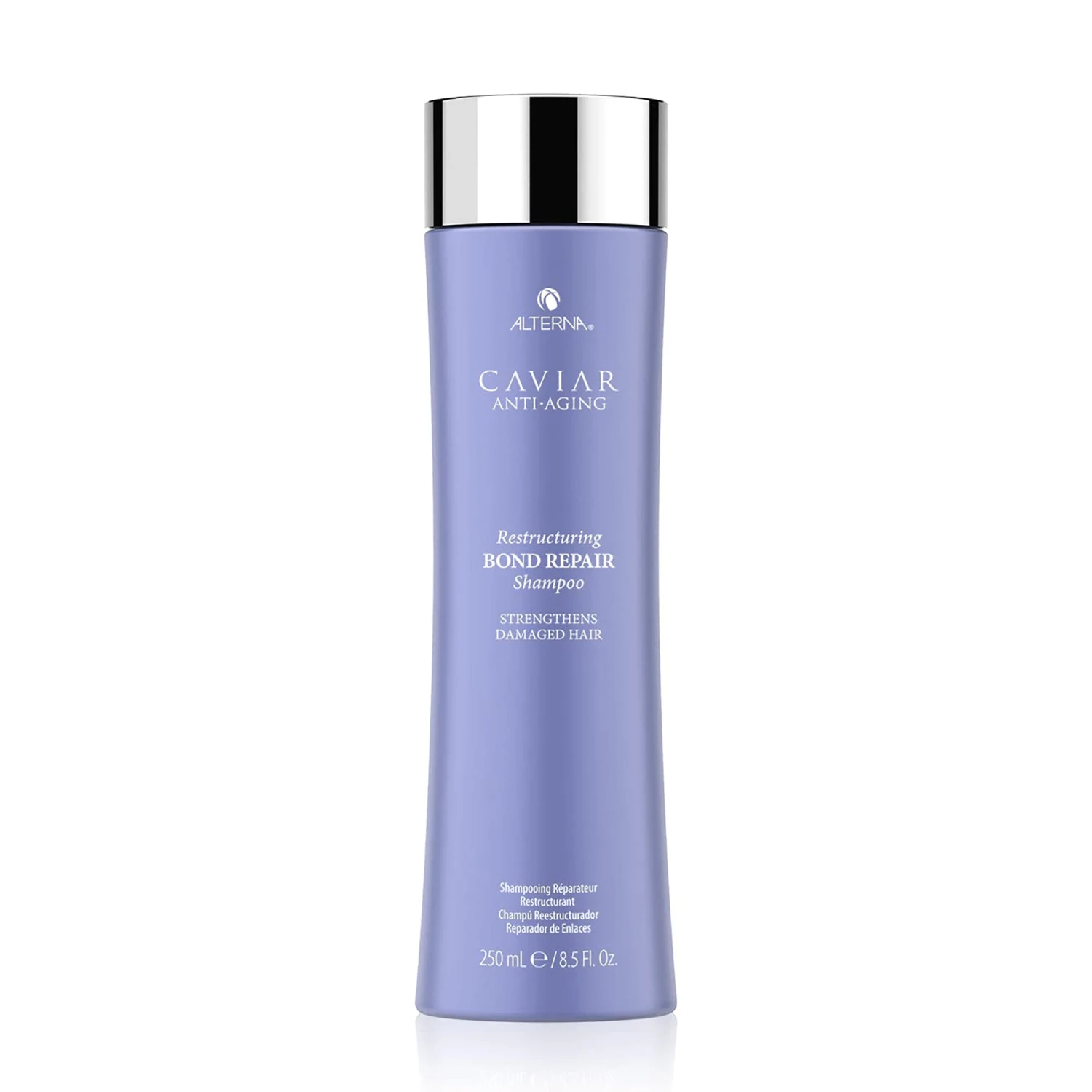 Alterna Caviar Anti-Aging Restructuring Bond Repair Shampoo helps to gently cleanse hair, remove daily build-up, and add shine. This color-safe shampoo helps to leave healthy-looking hair with more hydration, strength, shine, vibrancy, and elasticity. Formulated with vitamins and minerals to help restore natural hair structure.