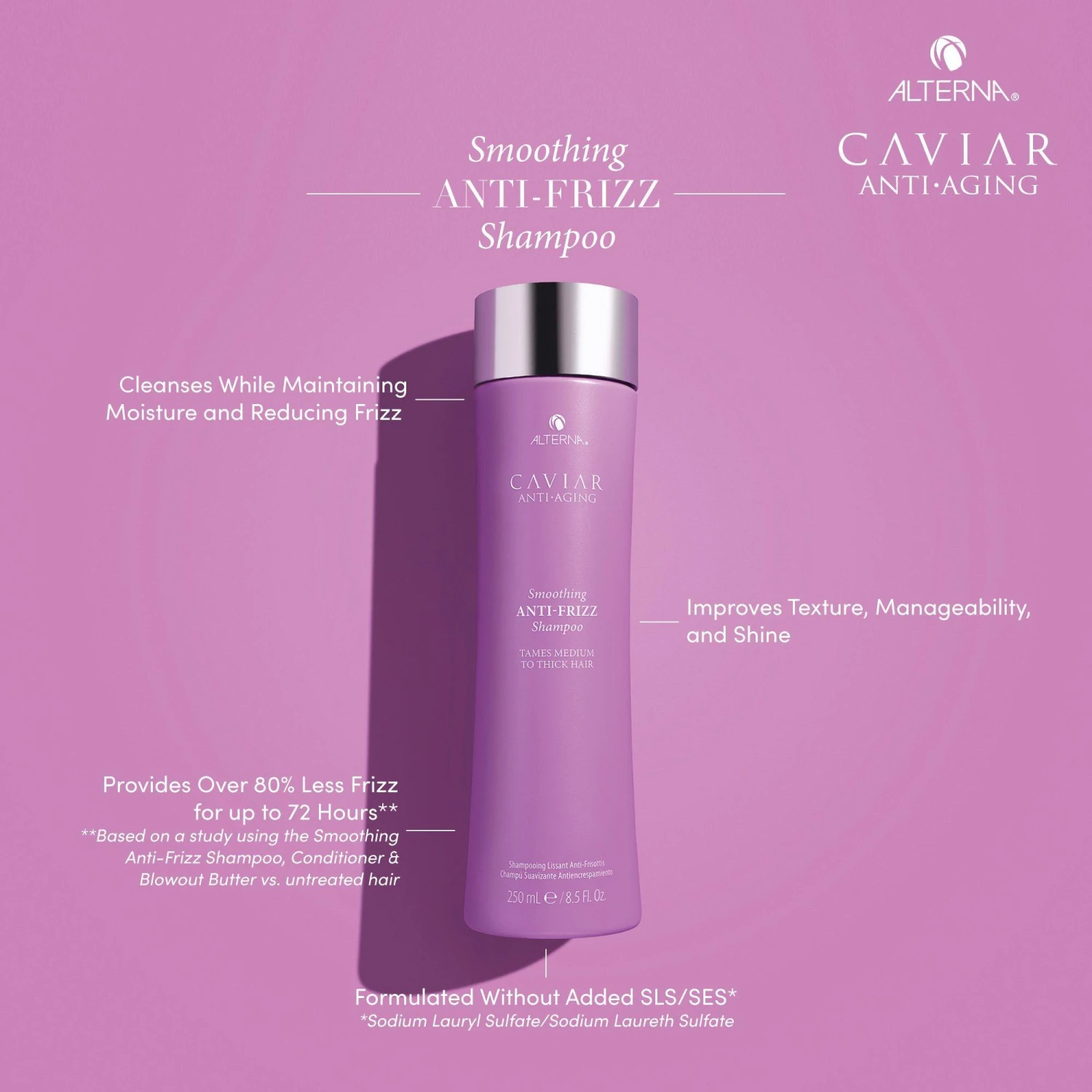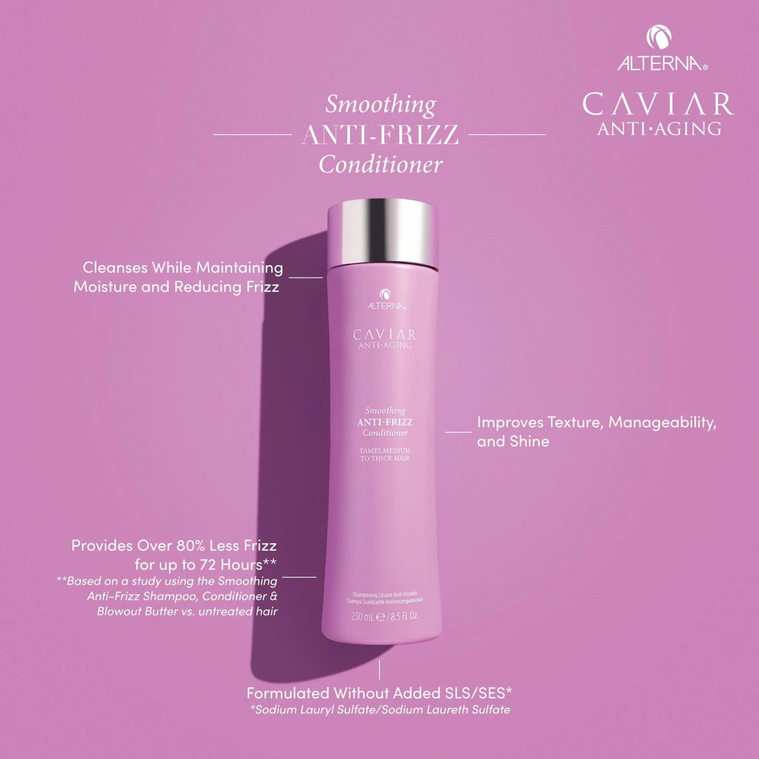 Enjoy the luxury of the Alterna Caviar Smoothing Anti-Frizz Shampoo & Conditioner Duo and experience the transformation of your hair. Say hello to beautiful, manageable, and frizz-free locks that last!