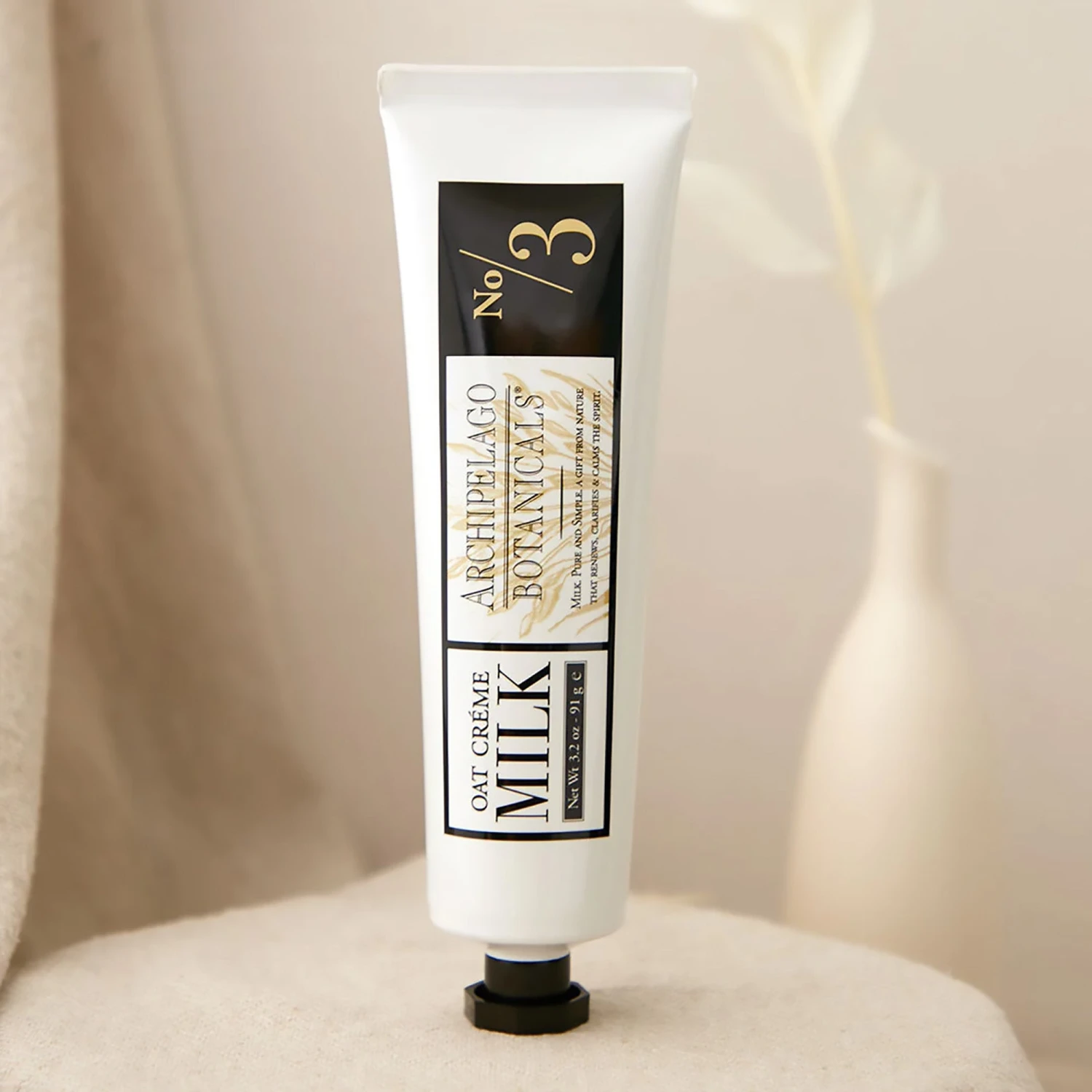 Archipelago Botanicals Oat Milk Hand Crème. Instantly hydrate dry, rough hands with this rich, velvety hand cream. It quickly absorbs deep into skin – no greasy residue left behind. Lightly Scented, Fully Moisturizing. Leave hands feeling soft with a gentle fragrance of wild oat, white tea and coconut water. Dried milk solids and aloe are blended with premium plant extracts and Jojoba Esters to create this natural and luxurious hand moisturizer. Natural body lotion formulations contains dried milk solids, natural oat proteins, amino acids and other natural extracts. Get Touchably Soft Hands. Apply as needed throughout the day, especially after washing hands. Each application will sooth and nourish. Paraben and Sulfate Free.