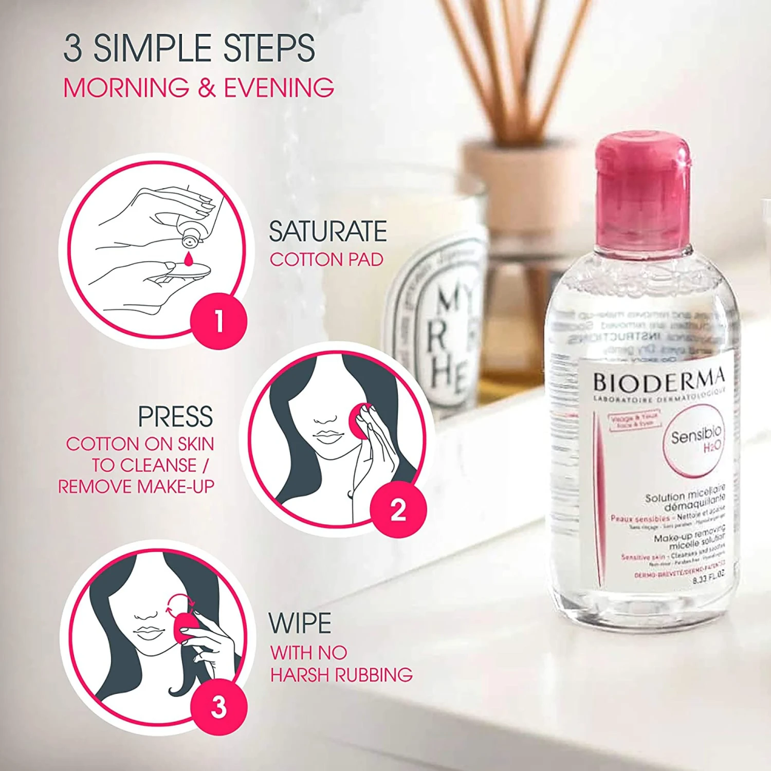 A cleansing and make-up removing water that respects the fragility of sensitive skin. Sensibio H2O uses micelles, which are molecules with fatty acid esters that capture impurities while respecting your skin’s balance and its phospholipids. Unlike similar products, Sensibio H2O contains no alcohol or paraben and it soothes the skin with a cucumber extract (cucumis sativus). It fits all skin types, even the most sensitive ones.