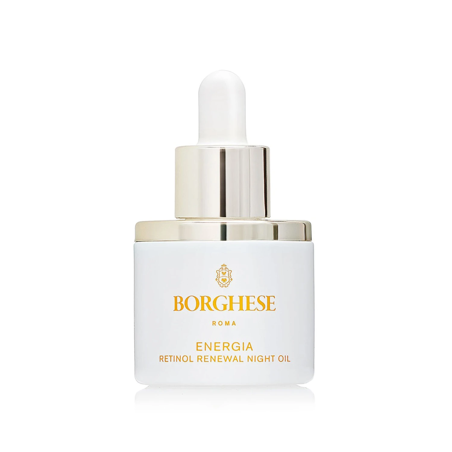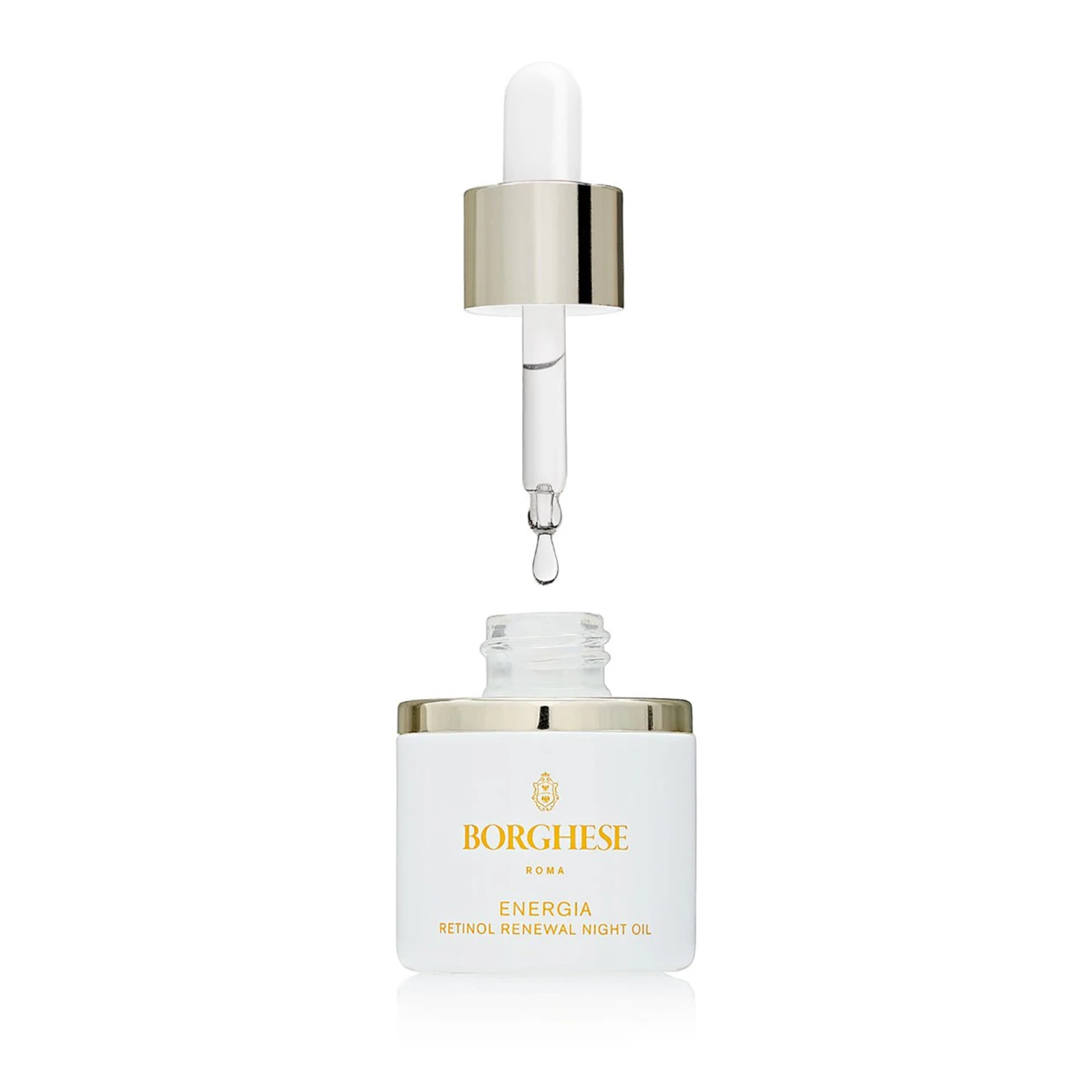 Introducing the Borghese Energia Retinol Renewal Night Oil, a must-have addition to your skincare routine. This powerful, fast-absorbing oil is part of the ENERGIA Vitamin-Powered Collection and is designed to address multiple signs of premature aging, leaving you with vibrant, youthful skin.