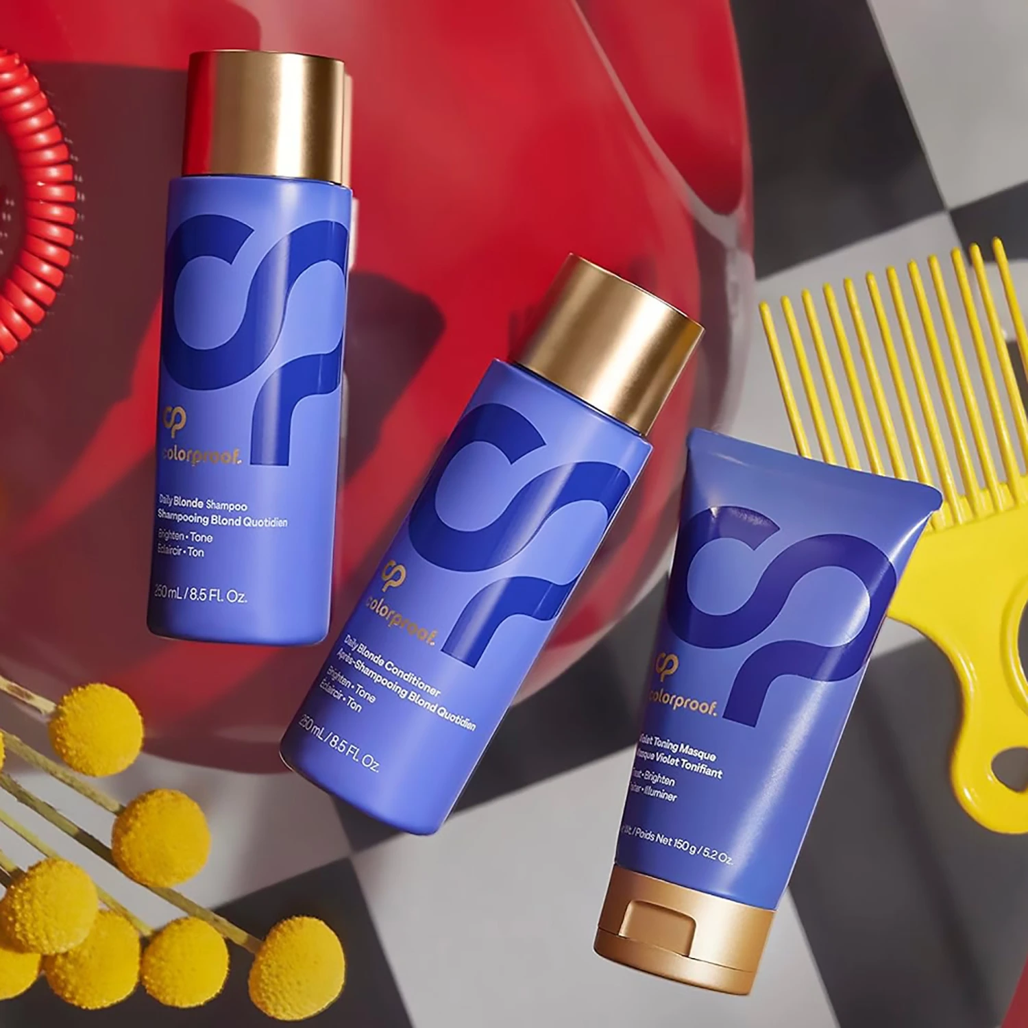 Introducing the Colorproof Weekly Blonde Masque, designed especially for blonde, lightened, and silver hair. This ultra-pigmented, purple treatment masque not only helps correct and neutralize brassy tones but also provides a range of benefits to nourish, brighten, and repair while maximizing color protection.