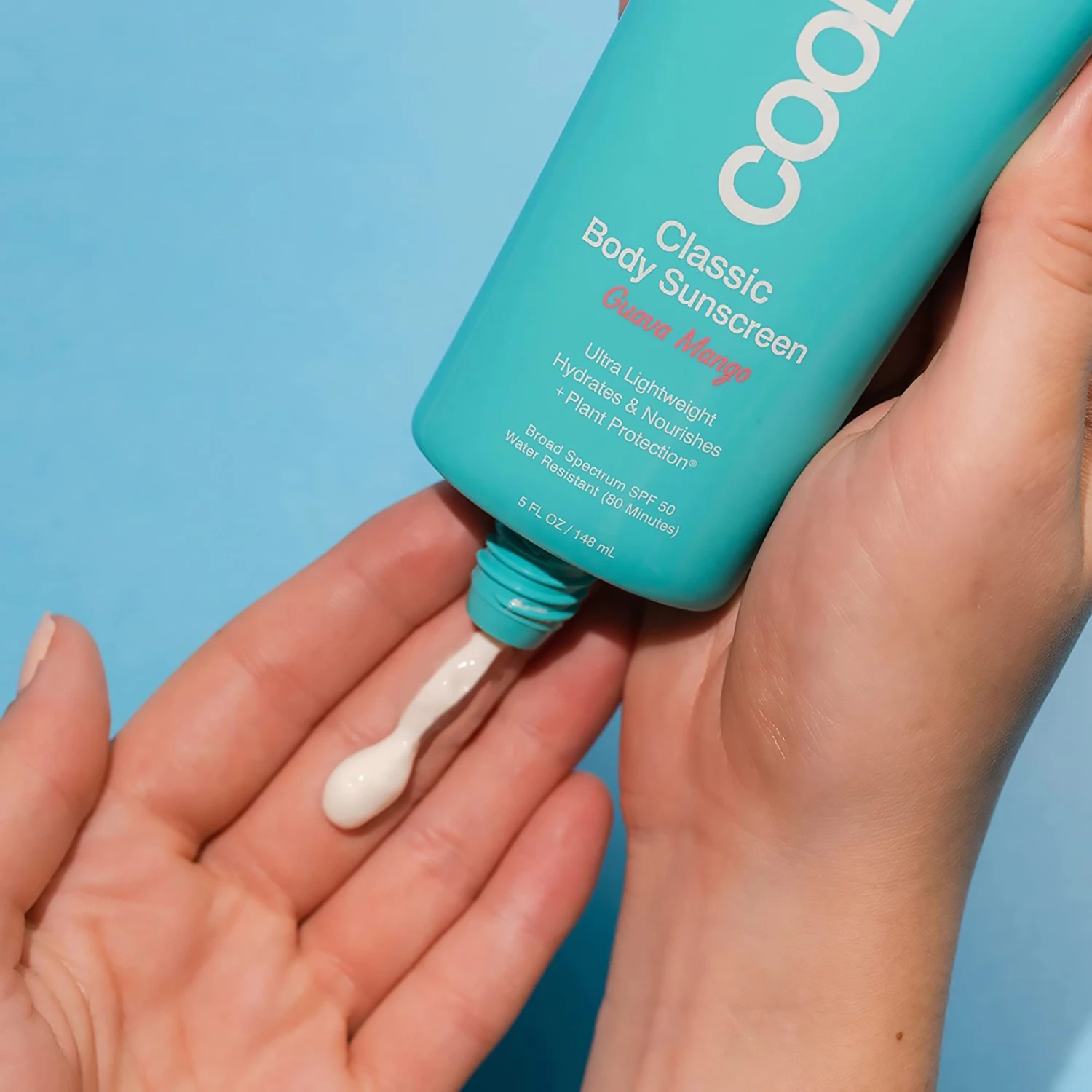 Introducing the “COOLA Suncare Classic Body Organic Sunscreen Lotion SPF 50 ” in Guava mango, an organic sunscreen lotion that helps to offer protection for the body. This sunscreen is suitable for active days spent outdoors, yet light enough for everyday use. Despite its SPF protection, the sunscreen remains lightweight, helping for comfortable and hassle-free application. Red Raspberry Seed Oil, Buriti Oil, Meadowfoam Seed Oil, and Prickly Pear Extract are incorporated into the formula to help combat free radicals and help provide nourishment. It is non-GMO, gluten-free, paraben-free, vegan. Embrace the delightful natural scent of Guava-Mango as you apply this exceptional sunscreen.
