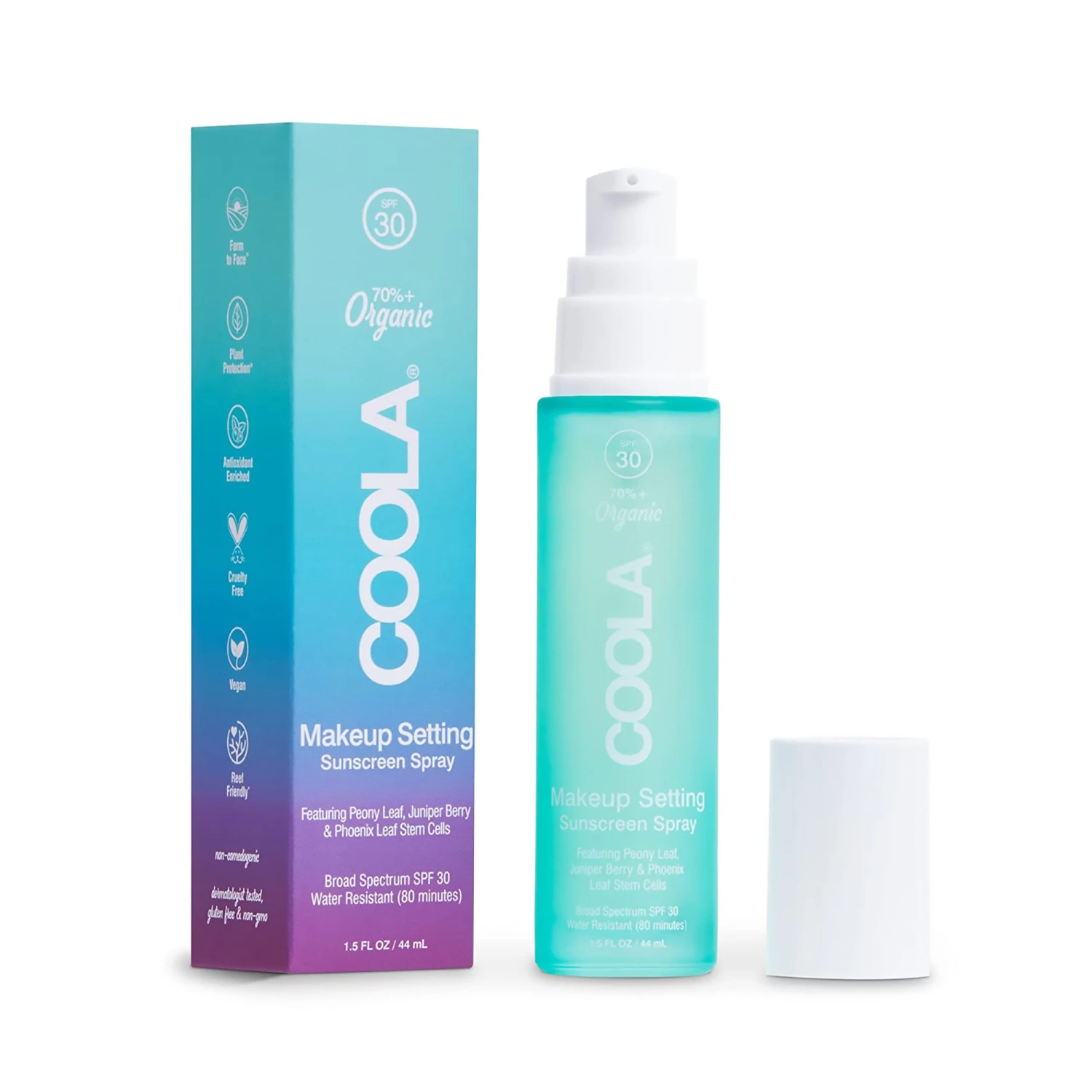 Introducing the COOLA Suncare Face Makeup Setting Spray SPF 30 – Green Tea Aloe, a organic makeup setting sunscreen spray for people who love both makeup and great sun protection, and want to reapply SPF without it messing up makeup. This organic sunscreen spray provides weightless sun protection while helping to ensure your morning makeup is set and stays in place throughout the day. Infused with Aloe Vera and Cucumber, this refreshing mist not only helps give a matte finish but also helps to hydrate skin and reduces shine. The inclusion of Hyaluronic Acid helps to add a hydrating boost to for skin, helping with moisture levels. Spritz on the SPF mist for weightless, no-shine protection anytime, anywhere.