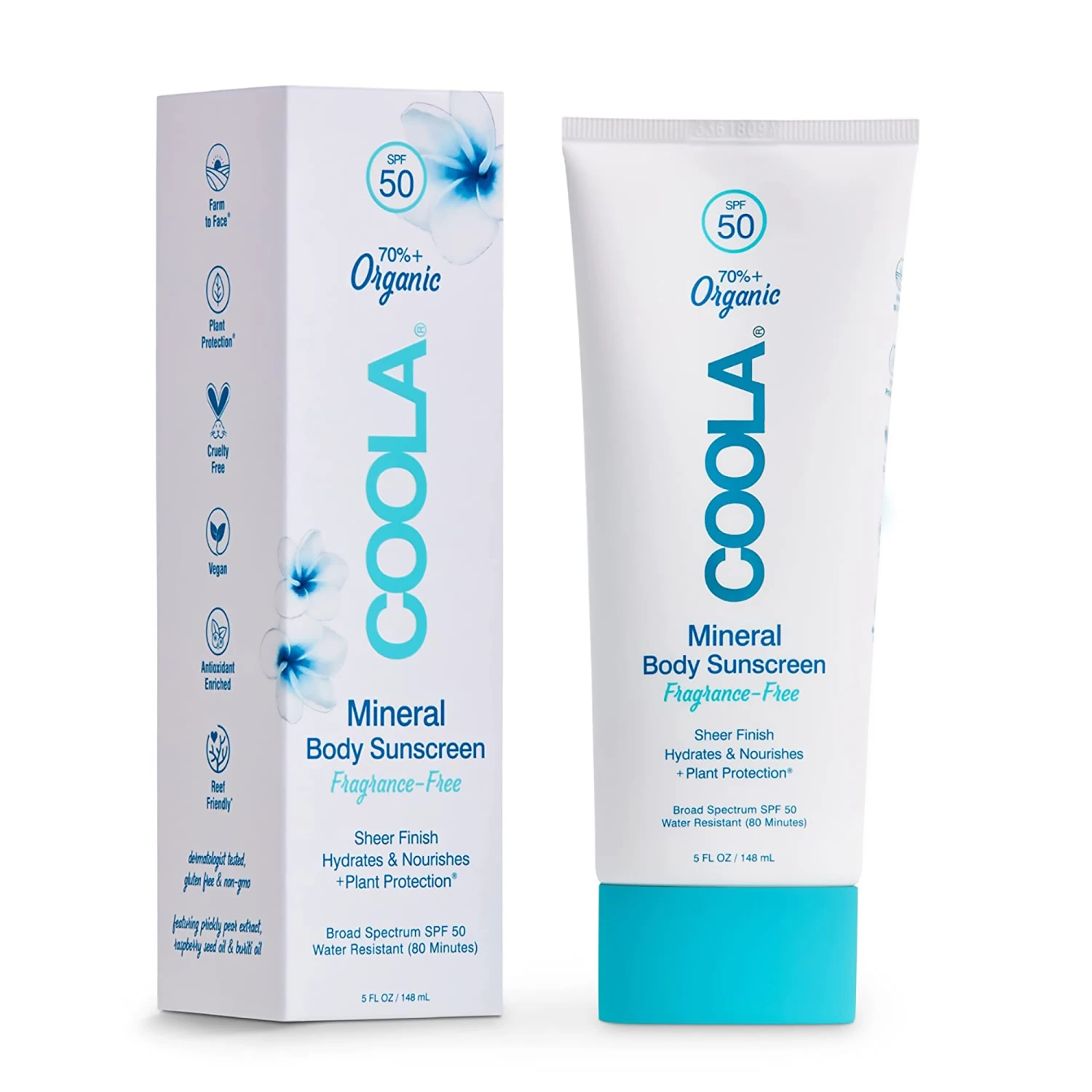 Introducing the “COOLA Suncare Mineral Body Sunscreen Lotion SPF 50” in Fragrance Free, a water-resistant mineral sunscreen lotion. Formulated with non-nano zinc oxide actives to help providing a sheer finish that caters to all skin types. Red Raspberry Seed Oil, Buriti Oil, Meadowfoam Seed Oil, and Prickly Pear Extract come together to help combat free radicals while also helping to nourish skin. It is Non-GMO, Paraben-Free, Gluten-Free, Vegan.