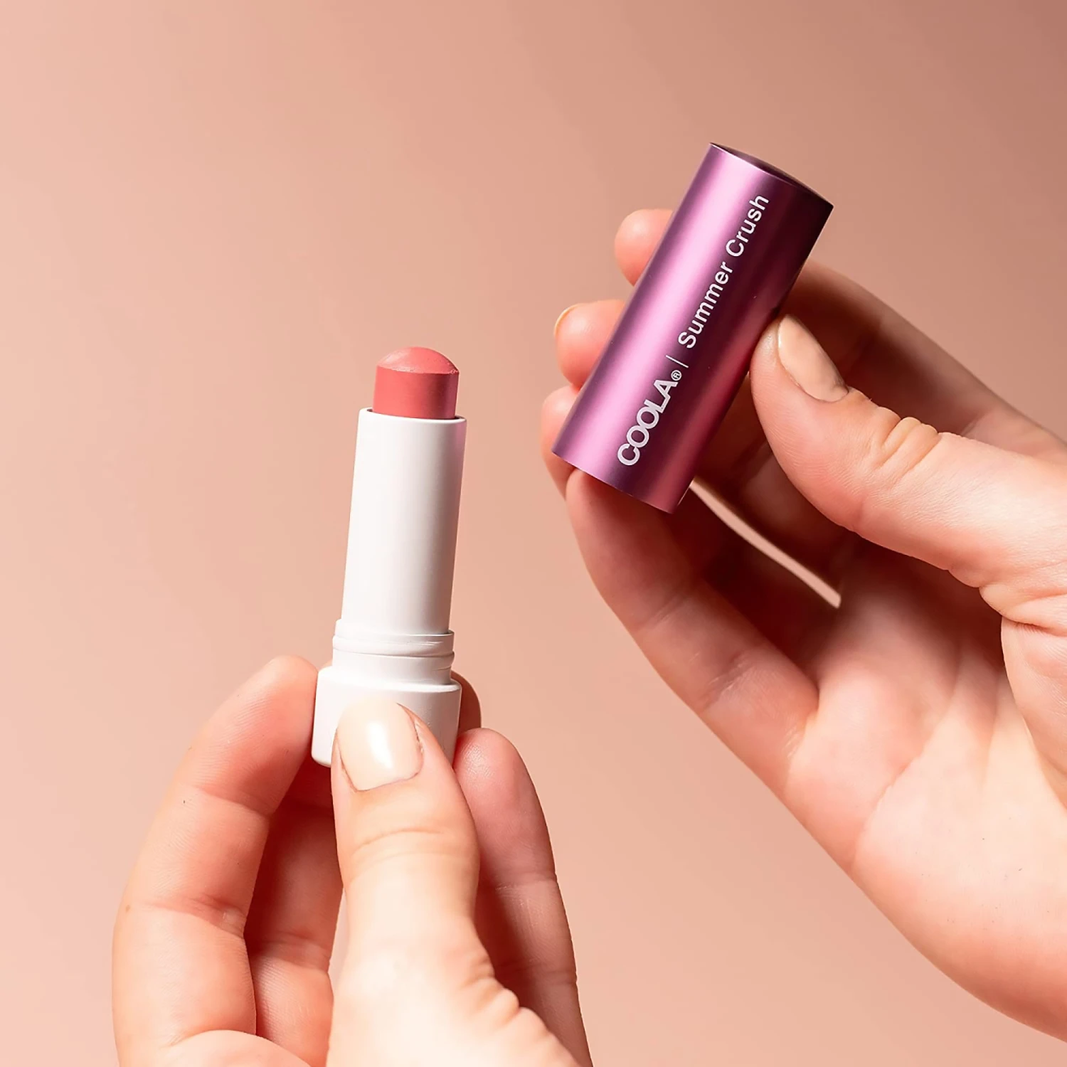 Introducing the Mineral Liplux® Organic Tinted Lip Balm Sunscreen SPF 30 by COOLA in Summer Crush, a organic lip balm that offers broad spectrum UVA/UVB protection, and helps to hydrate and smooth dry, chapped lips. Enriched with natural raspberry and avocado butter, this water-resistant balm helps to nourish, condition, deliver essential moisture while also helping to promote lip softness. The inclusion of beeswax helps to create a protective barrier on the lips, helping to shield them from irritants while allowing the skin to breathe. With its blend of organic ingredients, broad spectrum sun protection, and nourishing properties, the Mineral Liplux® Organic Tinted Lip Balm Sunscreen SPF 30 by COOLA helps to keep lips healthy, soft, and protected.