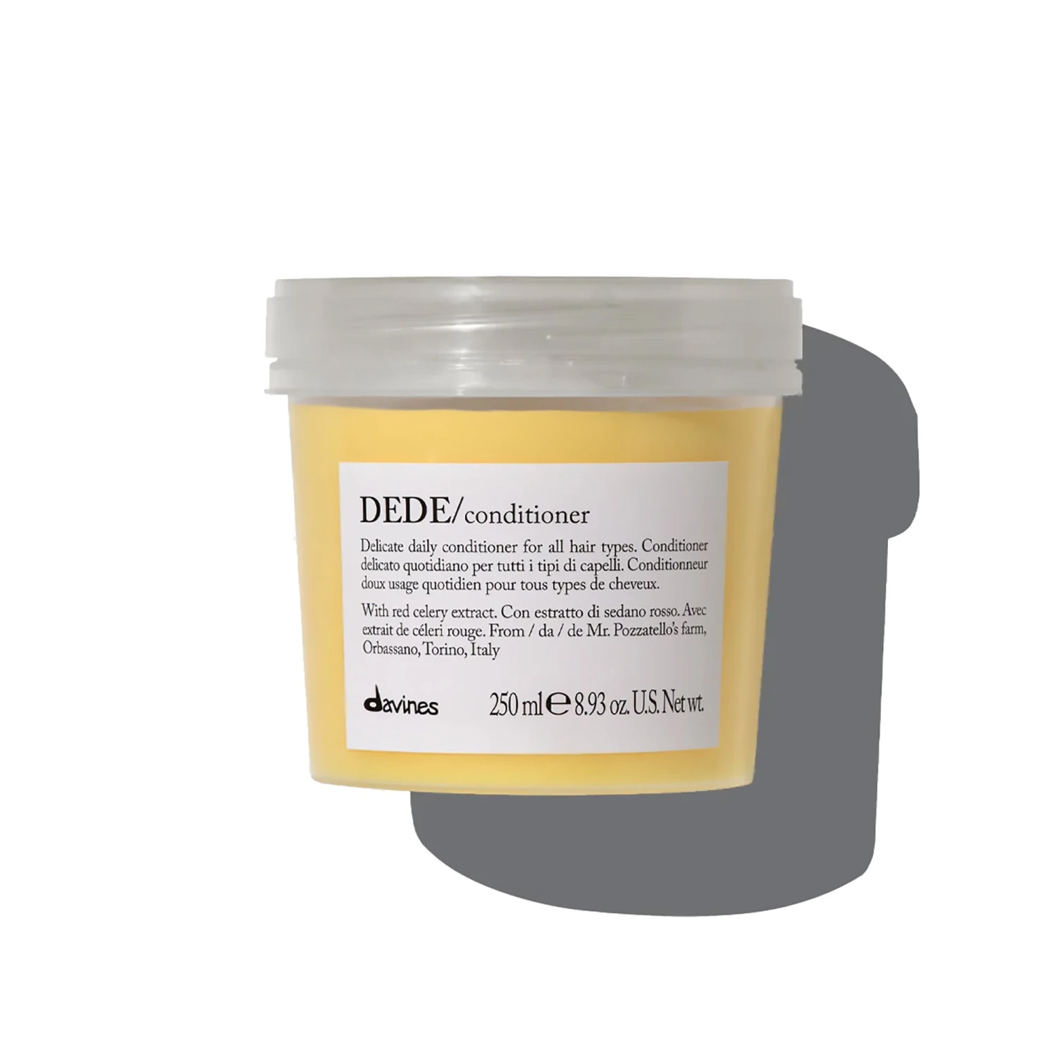 the DEDE conditioner is formulated with red celery extract to help hydrate and detangle hair without weighing it down. Helps leave hair shiny, easy to detangle and hydrated. Davines products are formulated without parabens and SLES/SLS sulfates. *Packaging may vary