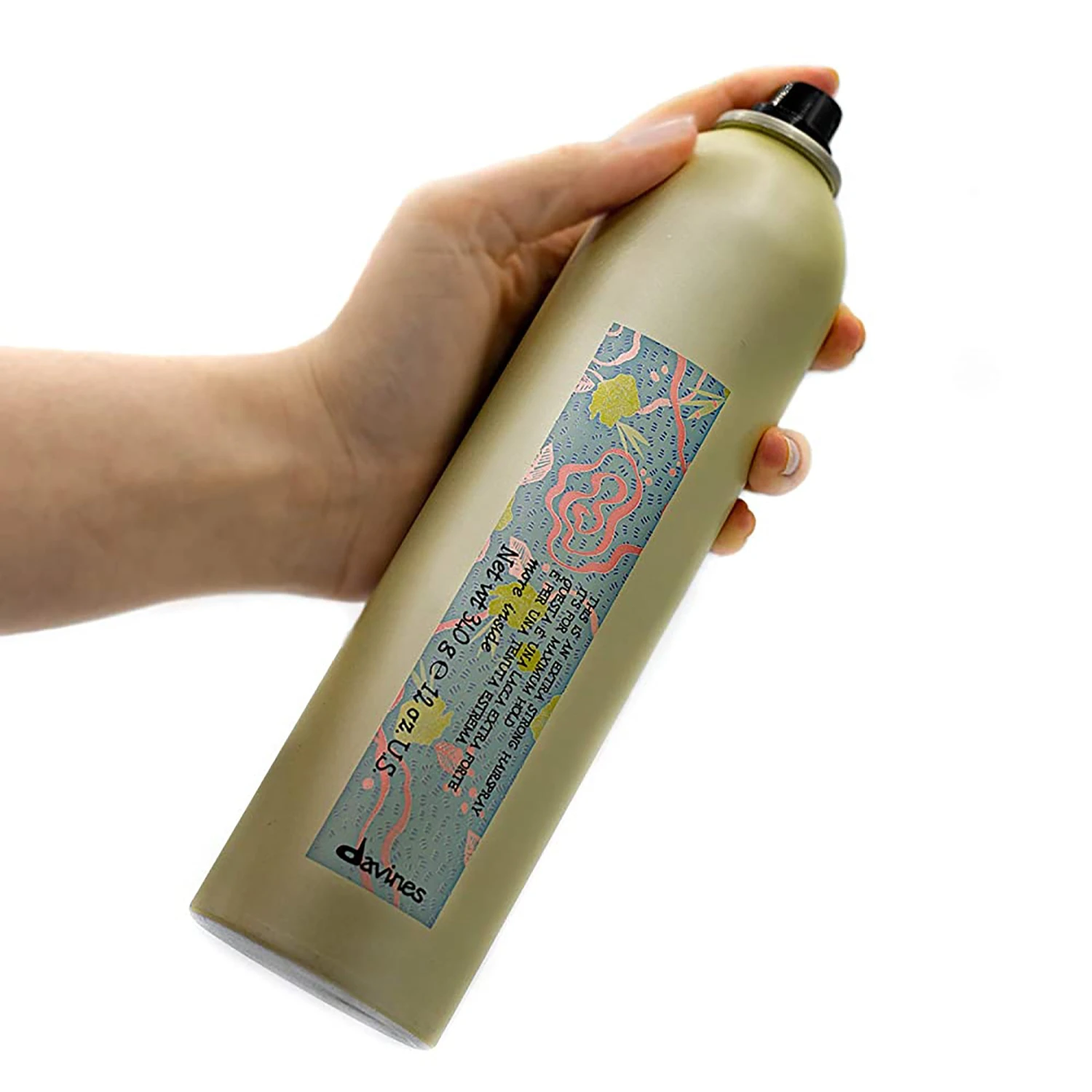 Davines This is an Extra Strong Hairspray helps to hold up against humidity, time and movement. This Is An Extra Strong Hairspray helps to locks hair into place, without leaving residue or stickiness. Davines products are formulated without parabens and SLES/SLS sulfates.