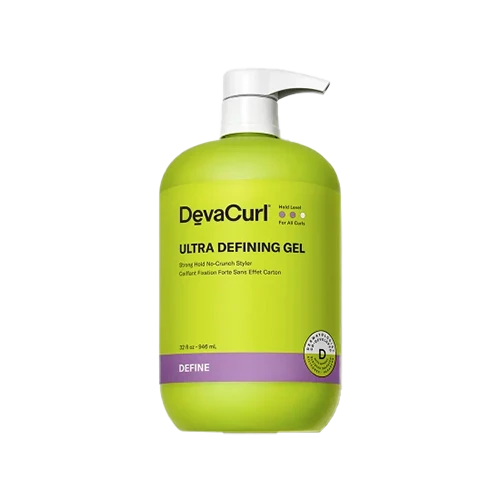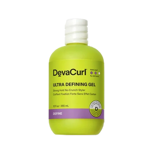 DevaCurl’s Ultra Defining Gel Strong Hold No-Crunch Styler gives you definition without the crunch. This non-flaking formula with a strong curl-locking blend provides a non-sticky curl cast that defines, fights frizz, and amplifies shine and bounce. Benefits: Gives all curls ultimate curl flexibility. Provides strong hold.