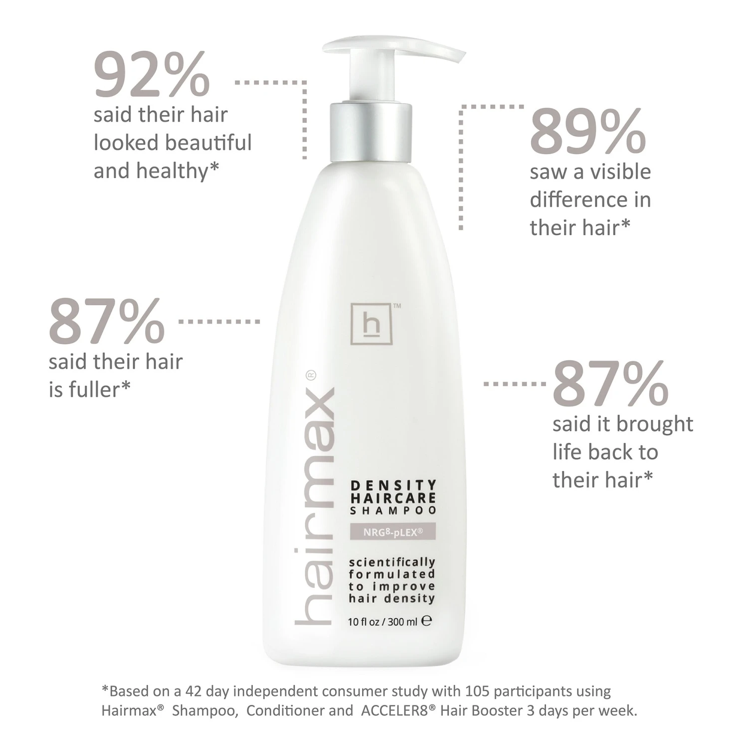 Developed to address the special needs of thinning hair, Hairmax Density Shampoo, gently cleanses, removing excess sebum and product build-up without stripping away natural oils. Our high performance, NRG8-pLEX® formula is delivered through our unique liposome technology, allowing for optimal absorption of the active ingredients. Your hair is left looking fuller, thicker and healthier.