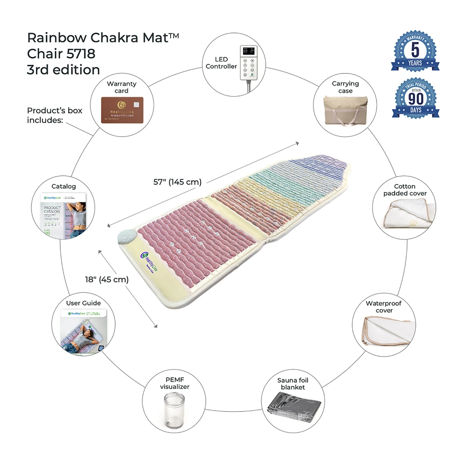 Invest in your well-being with the HealthyLine Rainbow Chakra Mat Chair 5718 Firm – Photon PEMF InframMat Pro. It’s time to take control of your well-being and embrace a more balanced life.