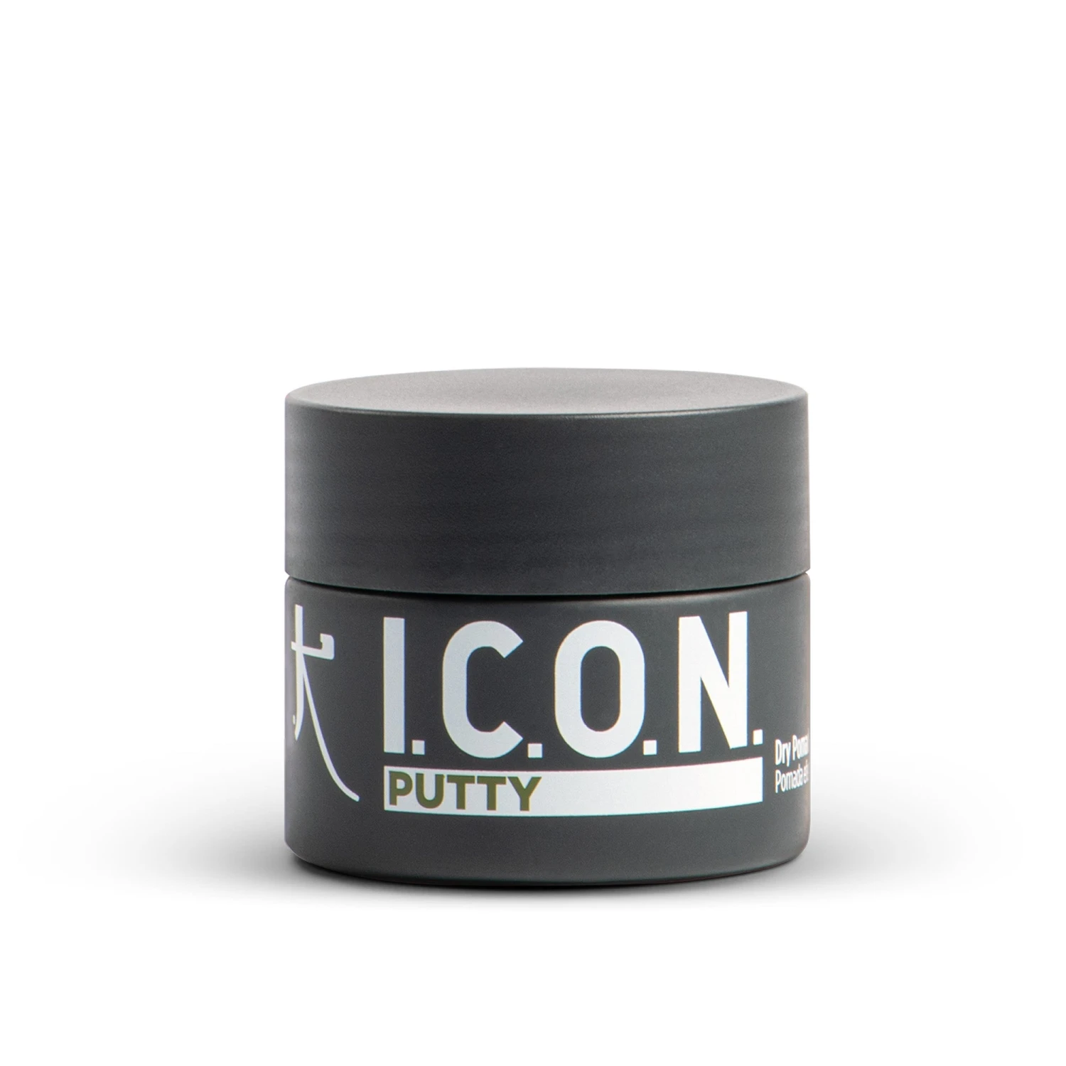 Help give hair a matter un-groomed finish with I.C.O.N. Putty Pomade, a reshaping putty for pliable hold. This matter dry pomade is infused with Carnauba wax and Amino Acids to help protect and form strong definition with moldable hold. This pomade applies like a putty, but sets in hair like a clay helping for short hairstyles to mold in style and hold in place.