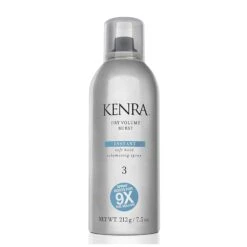 Kenra Dry Volume Burst 3 delivers up to 9 times the volume from roots to ends with a dry application for instant results. This superior soft hold spray is ideal for creating styles with volume, body, and tousled texture. Dry application. This texture spray for hair delivers a tousled texture.