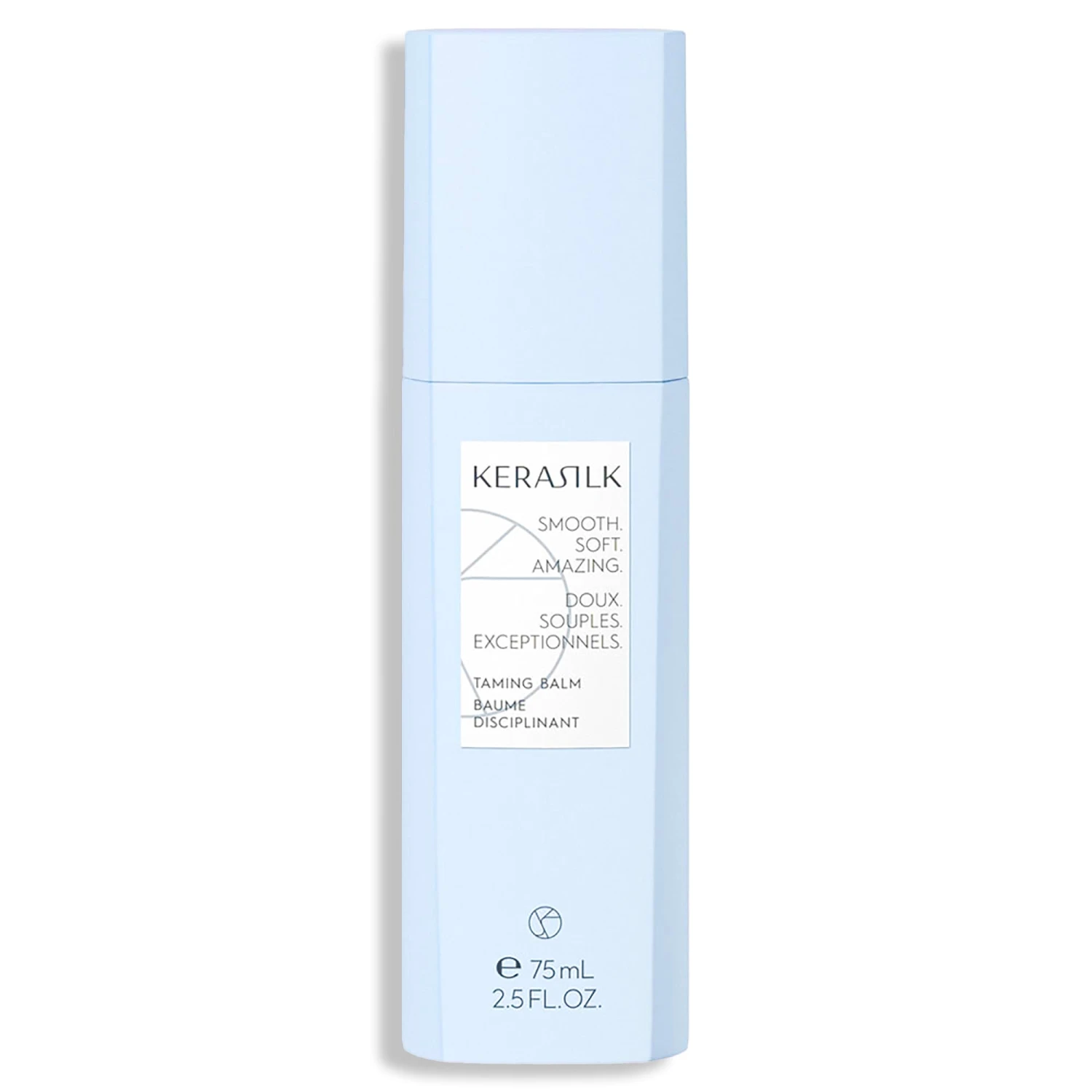 The Kerasilk Taming Balm is formulated without dyes, silicones, sulfates, mineral oil, or microplastics, and has a vegan formula.