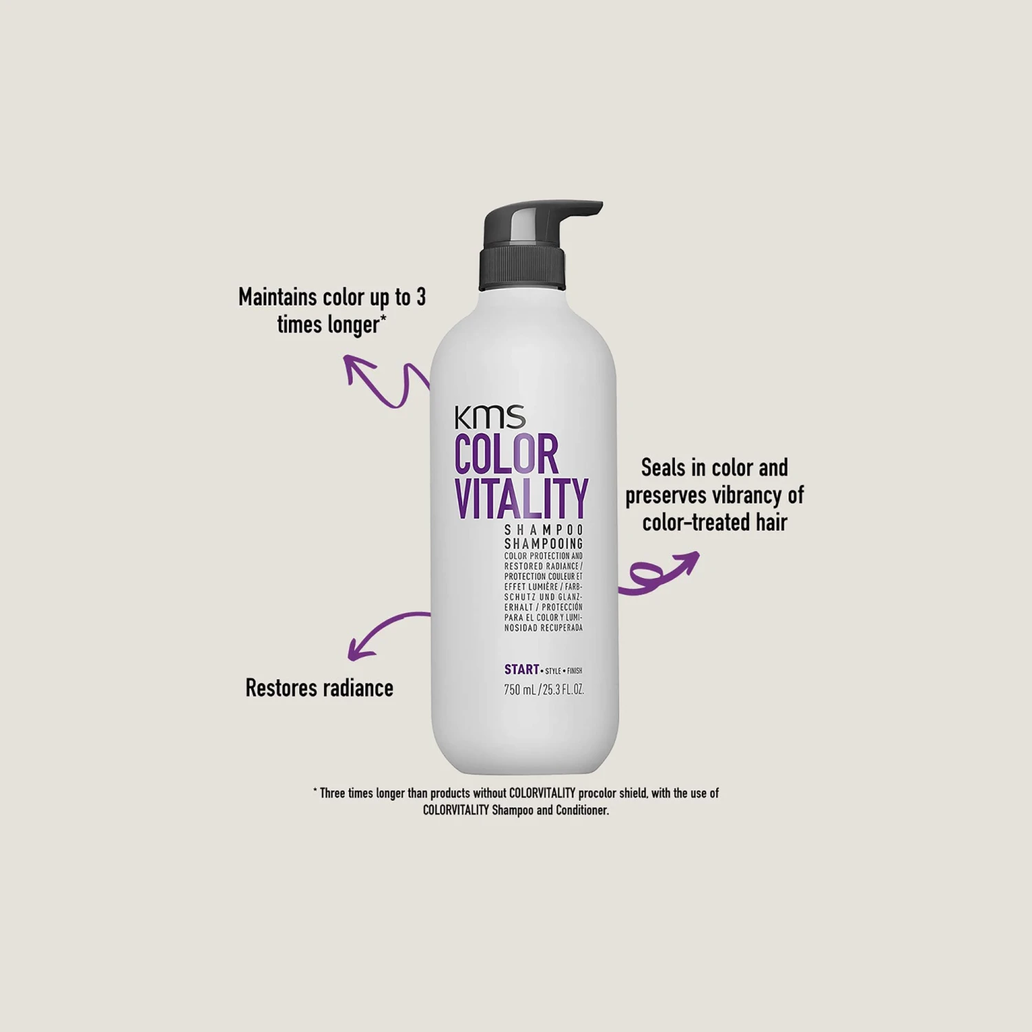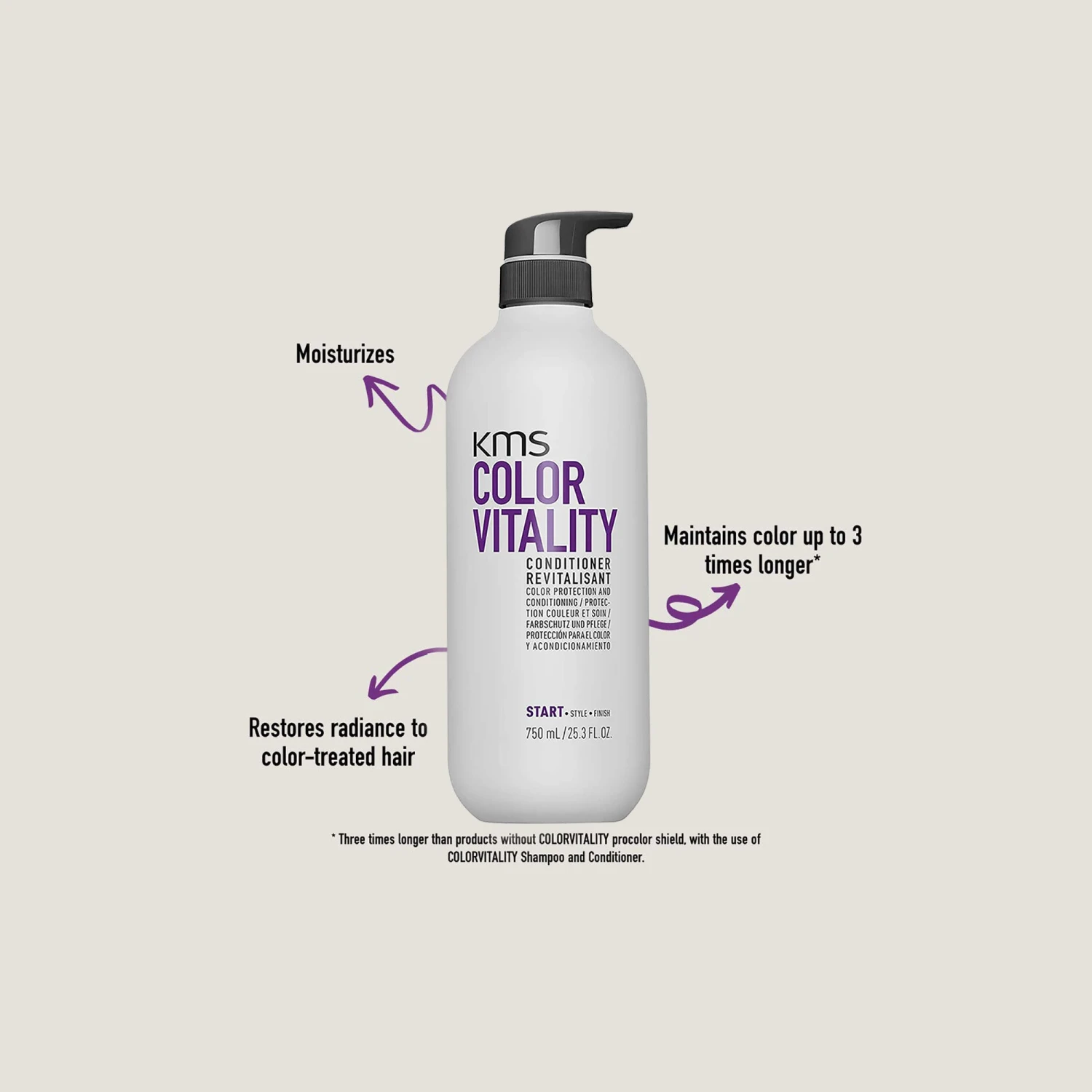 Maintain color longer with the KMS ColorVitality Duo Set. Scented with flowers, citrus and the forest the ColorVitality Duo set conveys a fragrance of nourishing sweetness. Both products help restore radiance and maintain color longer. The ColorVitality Shampoo seals in colors and preserves vibrancy of color-tread hair, while the conditioner works to moisturize hair. Both products are formulated with a AHA Structure Complex consisting of Lactic acid for Internal Reconstruction, Lilac for protection against stressors, and ginger loaded wit anti-inflammatory and antioxidant properties.