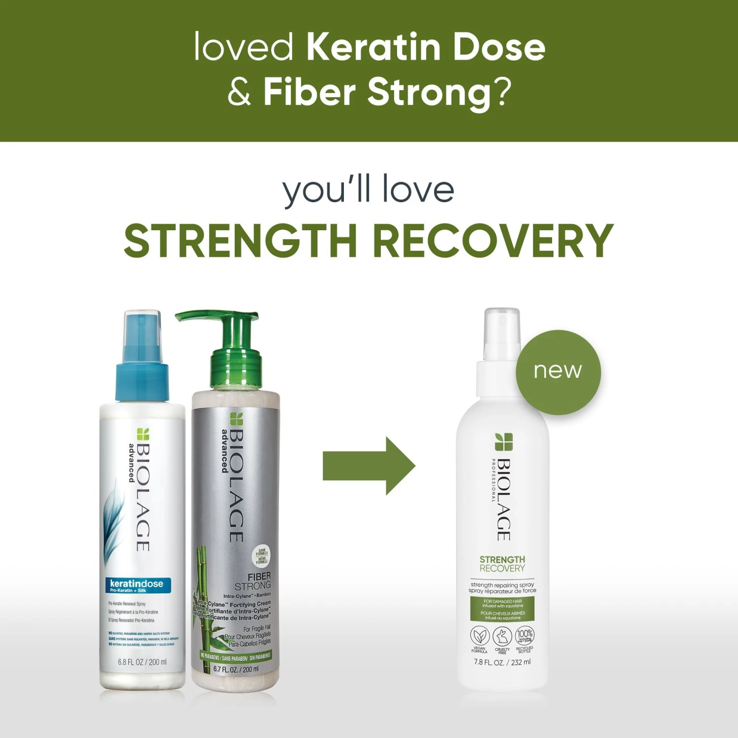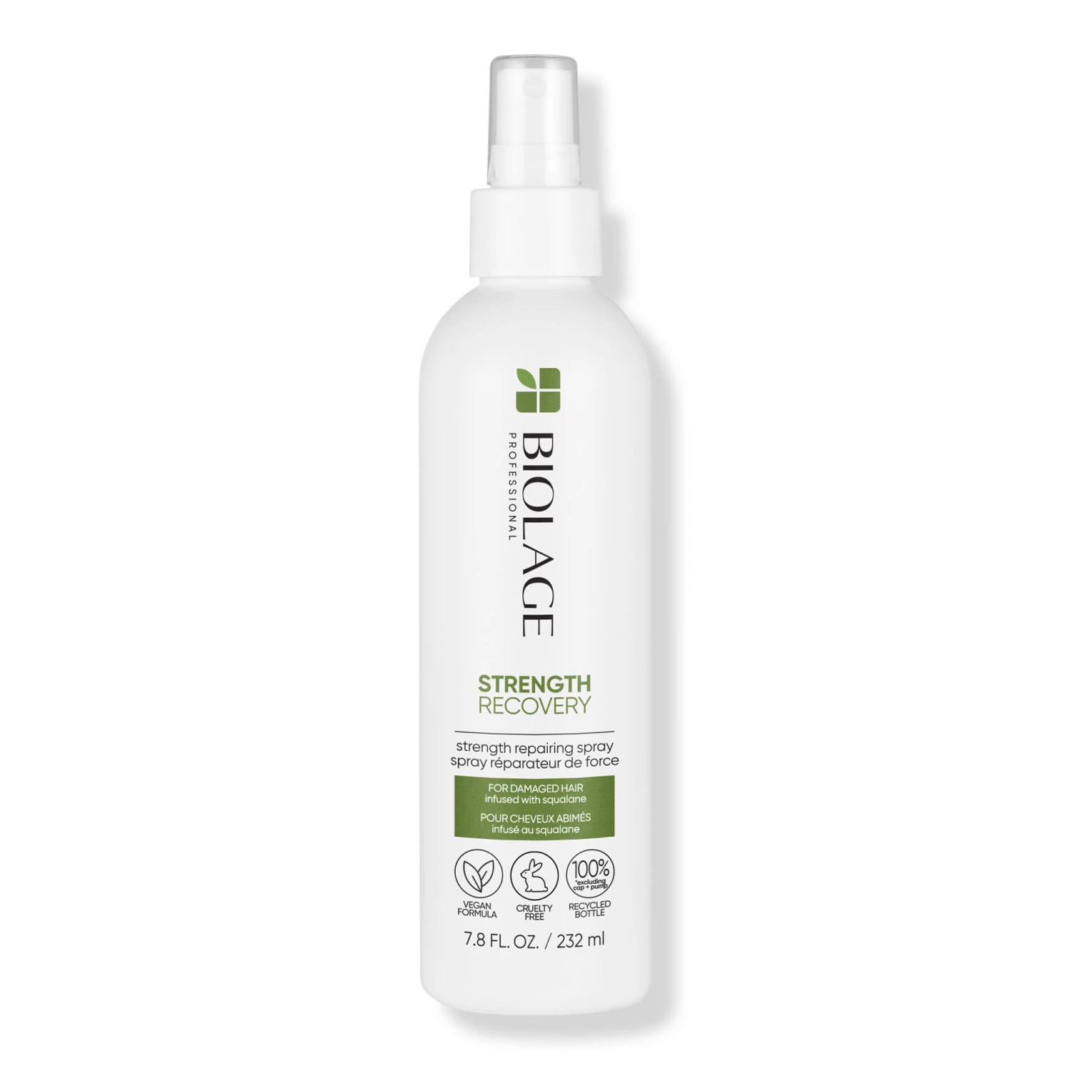 Strength Recovery Repairing Leave-In Conditioner Spray infused with vegan squalane is a lightweight, heat protecting leave-in treatment that strengthens damaged hair. Love Advanced Keratindose or Advanced Fiberstrong? Meet Strength Recovery, formulated with vegan squalane for ultimate damage repair. Strengthens while protecting sensitized hair. Heat protection. Lightweight formula. Leaves hair silky and detangled.
