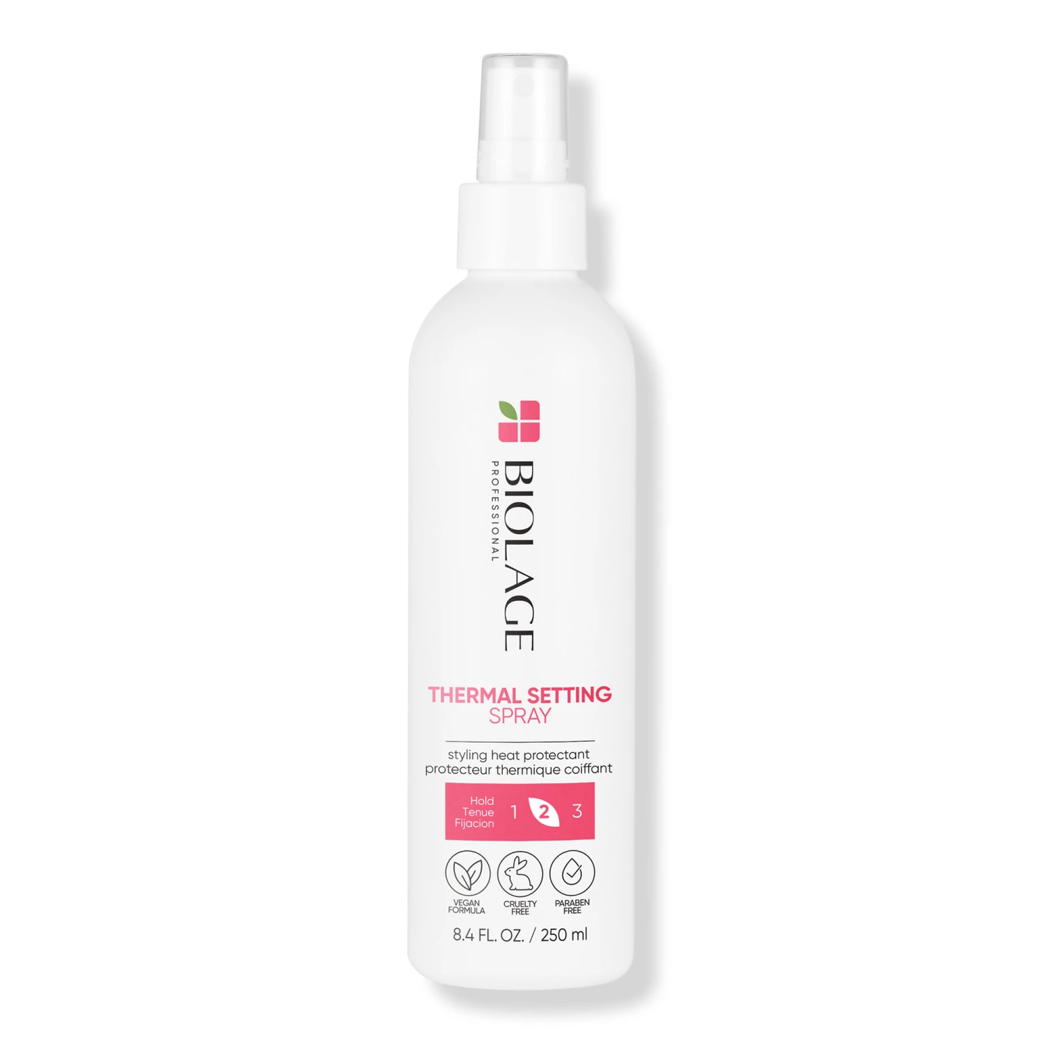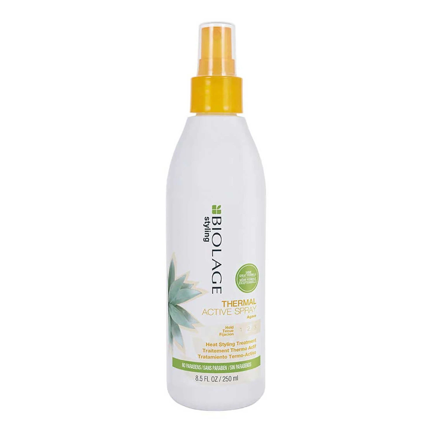 Biolage Styling Thermal Active Heat Protectant Spray protects hair against heat styling, and adds body and volume for long-lasting control. Heat protection. Adds body and Volume. Medium hold. UV filter. Paraben-free. No Mineral Oil. No Artificial Colorants. *packaging may vary*