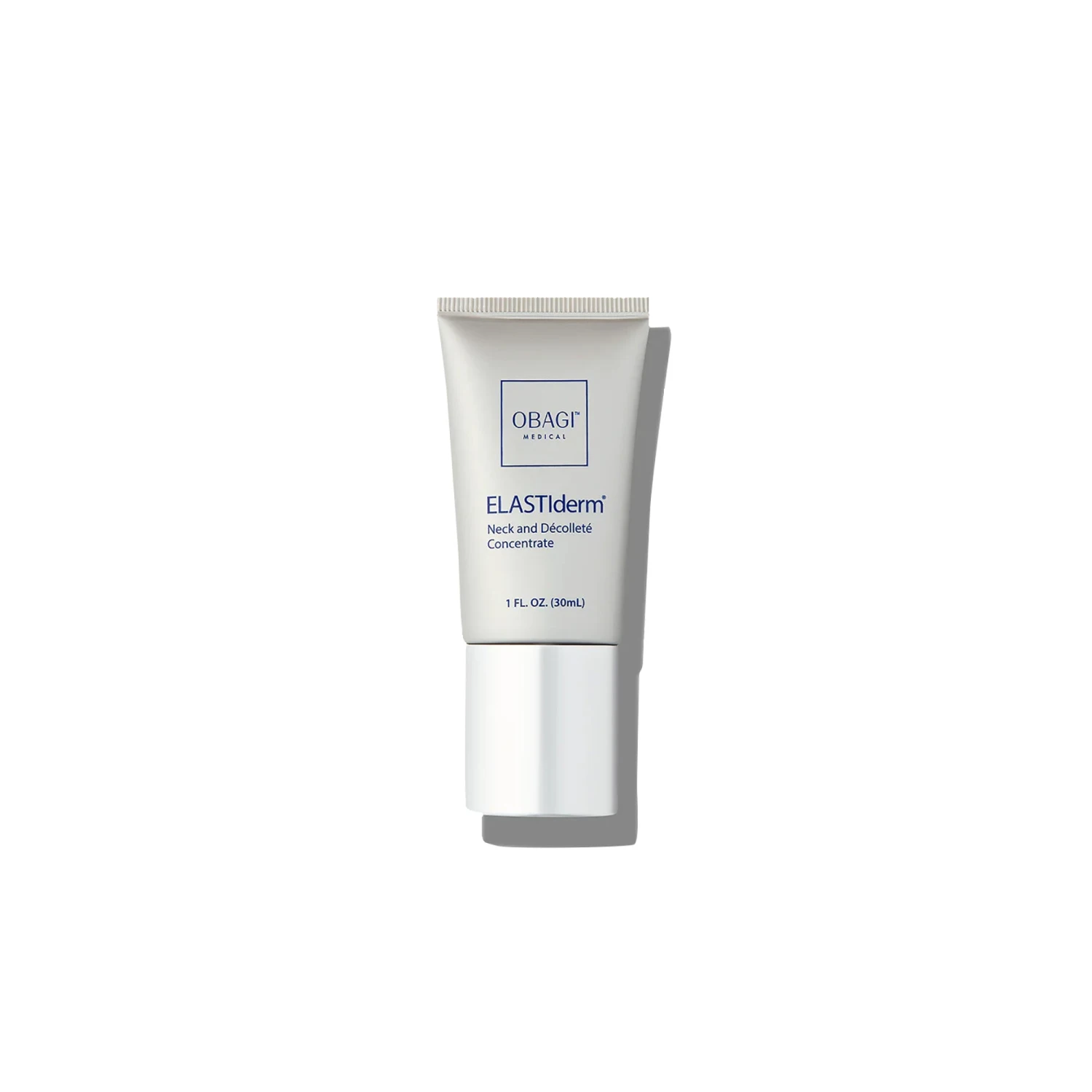 Help decreases the look of fine lines and wrinkles with the Obagi ELASTIderm Neck & Decollete Concentrate, a neck lifting concentrate formulated with retinoid and arbutin to help target area-specific signs of skin aging on the delicate skin of the neck and upper chest area. This lightweight serum helps to improve uneven skin tones for a more radiant appearance. Designed with a unique rollerball application to help disperse the serum evenly while also helping to firm, even skin tone, and restore elasticity.