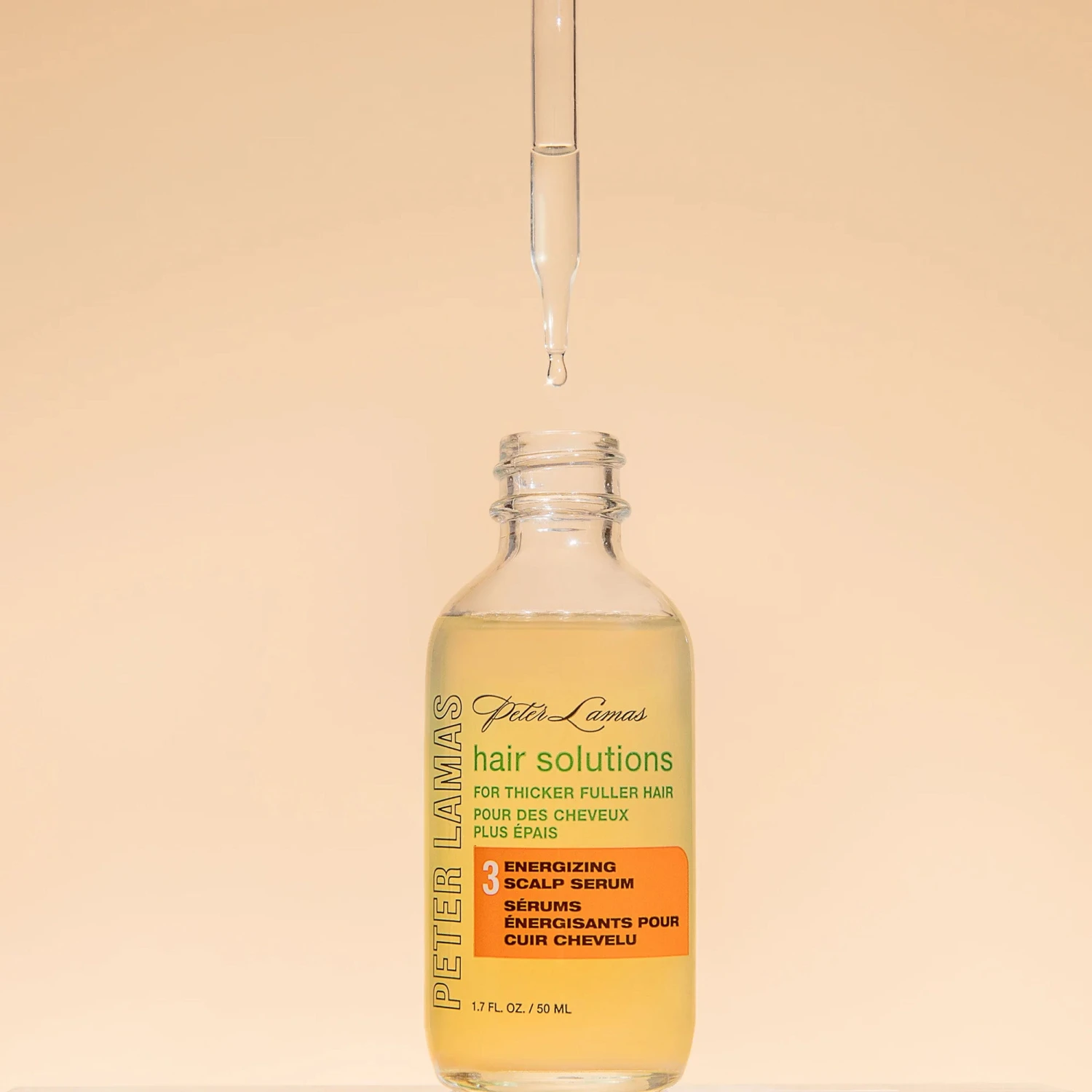Help increase scalp circulation, energize hair follicles, and increases hair density, thickness, and fullness with Peter Lamas Hair Solutions Energizing Scalp Serum, a scalp to apply directly onto the scalp to help mitigate hair loss. Infused with a combination of Apple Stem Cells, Biotin, Trichogen, Baicapil, Procapil, and Vitamins, this botanically-rich serum helps reduce the appearance of thinning hair and helps to inhibit DHT buildup to encourage thicker, fuller-looking hair. For optimum results, it is recommended to use the complete Peter Lamas Hair Solutions Energizing System. Vegan, Cruelty-free, Paraben-free.