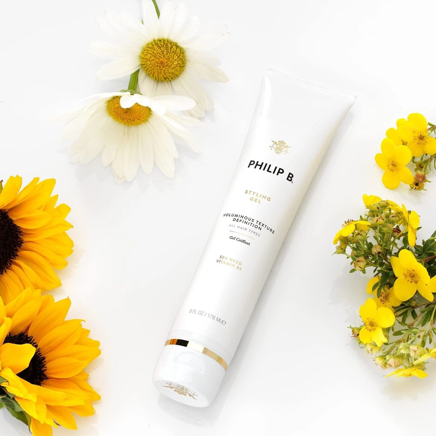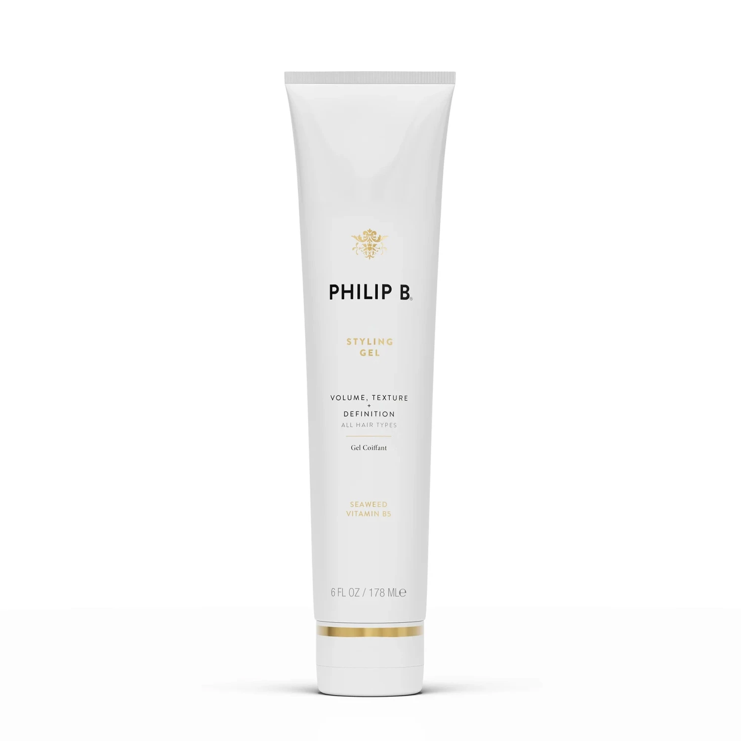 Help gives hair a defined, voluminous look with Philip B Styling Gel, a supple soft-hold gen with flexible control. This gel is enriched with conditioning Vitamin B5 (Panthenol), Aonori (Blue Seaweed) and Irish Moss, to help give styles a textured, defined feel. Ideal for achieving a wet look or blow-drying primer. Vegan, Paraben-free, Color-Safe.