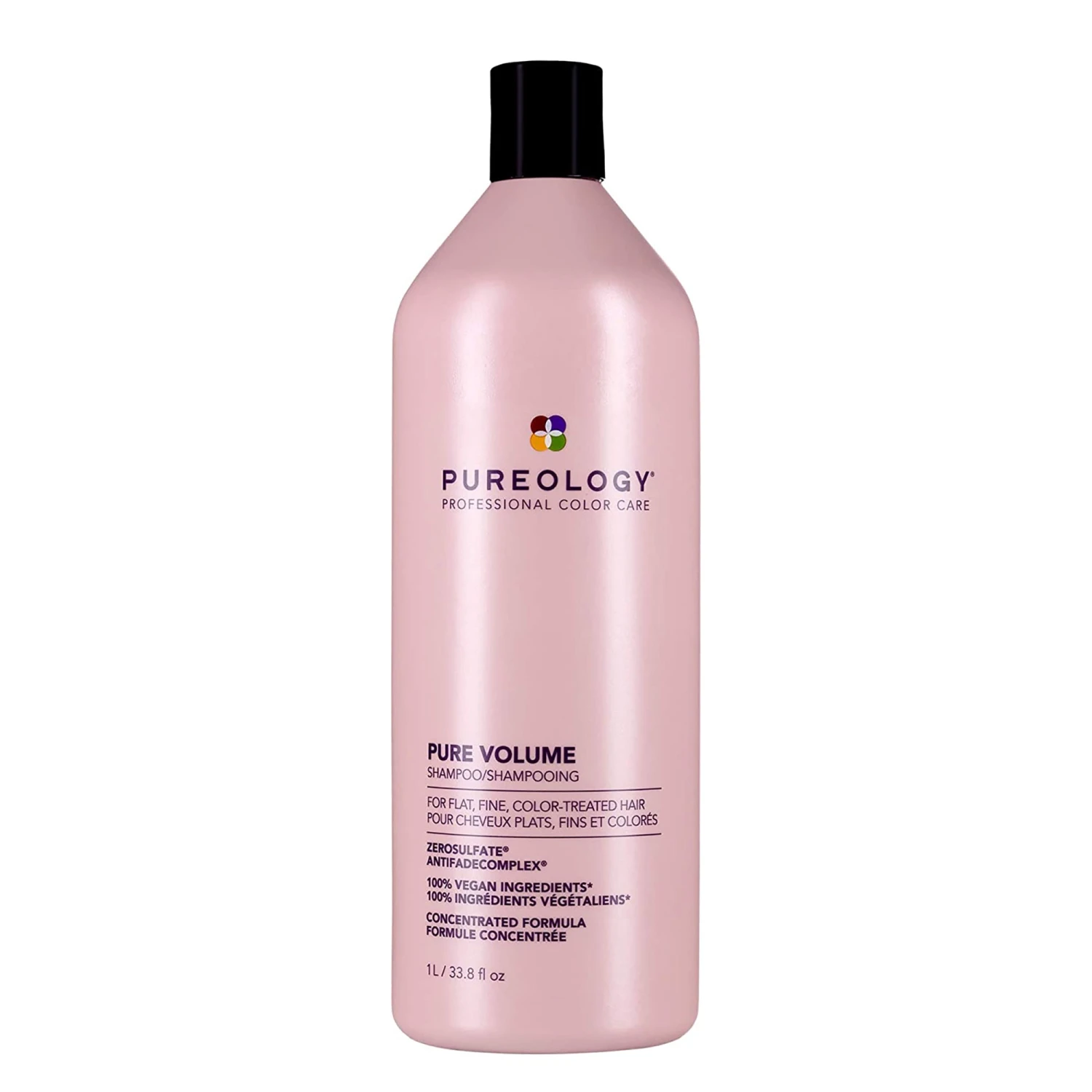 Boost hair’s volume with Pureology Pure Volume Shampoo. Formulated to boost volume and restore hair’s movement, Pureology Pure Volume Shampoo revitalizes fine, flat hair. Wheat protein and eucalyptus leaf extract work to bump up the volume while the signature aromatherapy blend of pink grapefruit, wild rose and cedarwood invigorates the senses. Silicone-free formula, Free of sulfates, vegan.