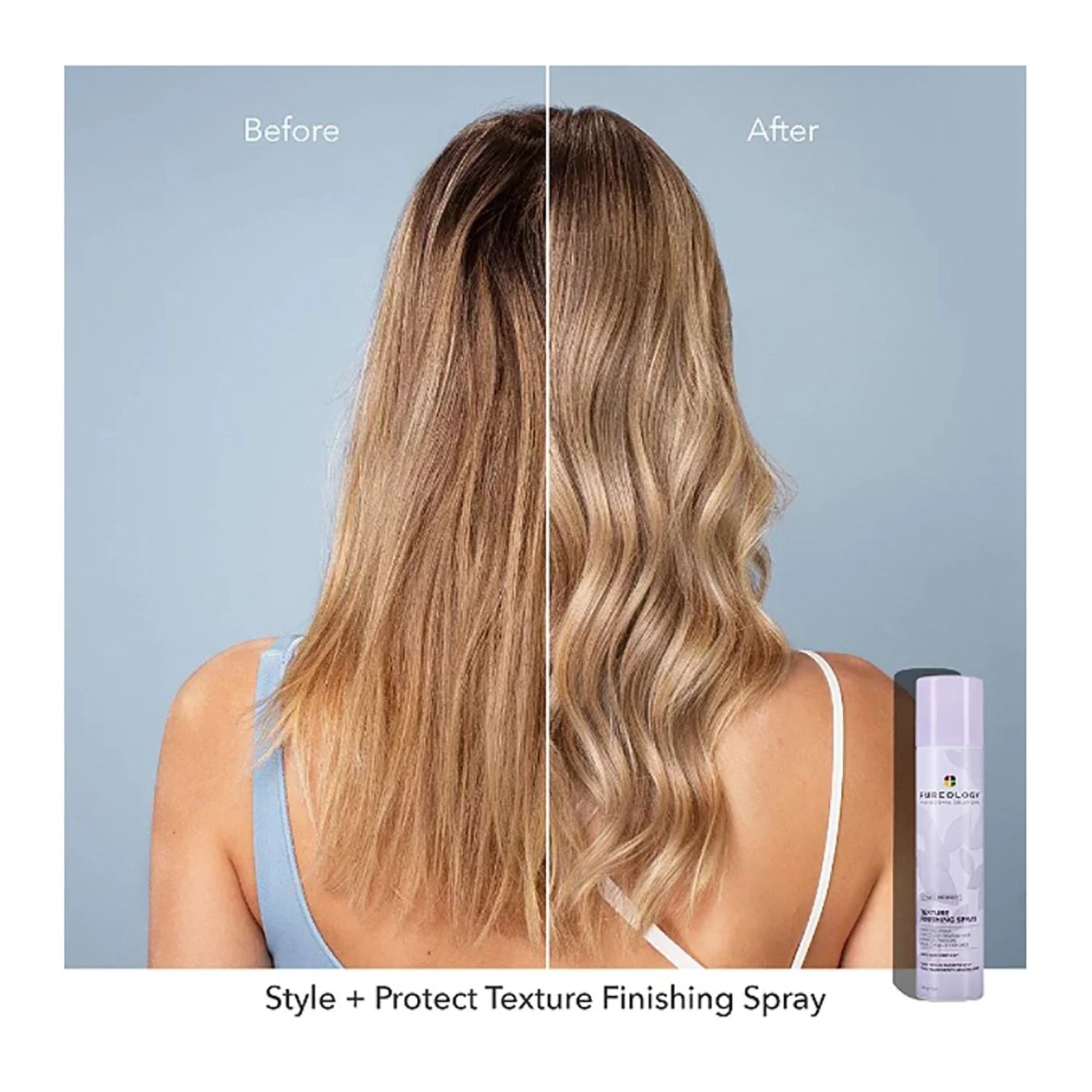 Add instant texture, movement and radiant shine to your hair with this lightweight, texture spray styling product for color-treated hair. Wind has always been your hair’s enemy but turn the table on this bad hair day culprit with the Wind-Tossed Texture Finishing Spray for color-treated or natural hair. Created with sunflower seed extract for hair, this hair texture spray is designed to create texture and volume without weighing your hairstyle down. Pureology’s exclusive AntiFade Complex protects hair color and features full spectrum UVA/UVB sunscreen for that salon-fresh look and feeling. Add this texture spray to your hair care routine and achieve the ultimate I just got off the runway, wind-blown hairstyle. Lightweight texture spray formula, Sunflower Seed Extract adds shine without weighing hair down, Protects from heat, pollution and UV rays, vegan, AntiFade Complex protects hair color.