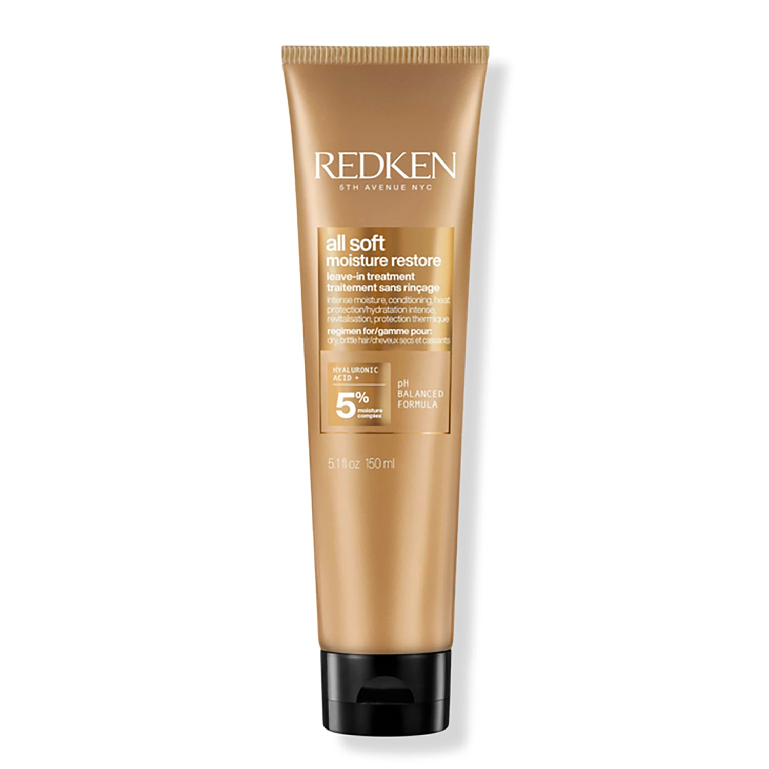 Restore hydration and retain moisture for shiny, healthy hair with this lightweight leave-in treatment. Redken’s All Soft Moisture Restore Leave-In Treatment with Hyaluronic Acid adds immediate shine & conditioning for a healthy looking and feeling of hair. It hydrates deeply and retains moisture lost by humidity, heating tools and color services.