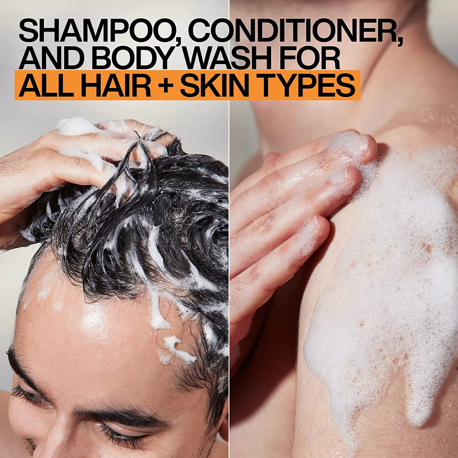Redken Brews 3-In-1 Shampoo for men cleanses, conditions the hair, and provides head-to-toe freshness. Redken Brews 3-In-1 provides hydration, softens skin, and acts as a convenient all-in-one product that is great for the gym or travel. Shampoo, conditioner, and body wash for all dry hair and skin types. Cleanses, conditions the hair, and provides head-to-toe freshness. Provides hydration, softens skin, and acts as a convenient all-in-one product that is great for the gym or travel. Moisturizes and strengthens dry hair. Conditions and repairs. Leaves skin hydrated and soft.
