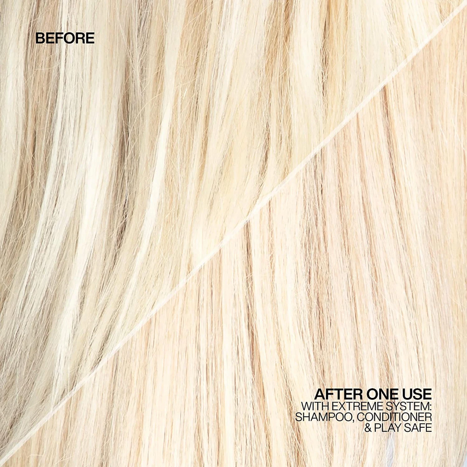 Redken’s Extreme Play Safe Heat Protectant and Damage Repair Treatment is an all-in-one treatment and leave-in conditioner that protects your hair from heat, fortifies the strength of your hair and reduces heat damage. Best for anyone who frequently uses heat to style their hair (blow dryers, flat irons, curling irons). All-in-one product that protects your hair from heat & repairs your hair. Helps prevent split ends & reduces the appearance of split ends.