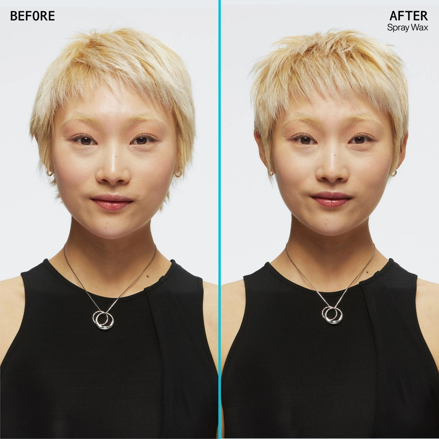 (Formally named Redken Wax Blast 10) Redken Spray Wax Invisible Texture Mist is a medium control hairspray that delivers a tousled look with a satin-matte finish. This professional product features a Micro-Wax Complex for instant undone texture and control. Love Wax Blast 10? Meet Spray Wax. Creates highly texturized, tousled look. Adds volumizing body and dimension with a high impact, satin-matte finish. No waxy feel. Medium control aerosol wax. Sprays on for a perfectly undone texture. Adds body and dimension with a choppy, satin-matte finish.