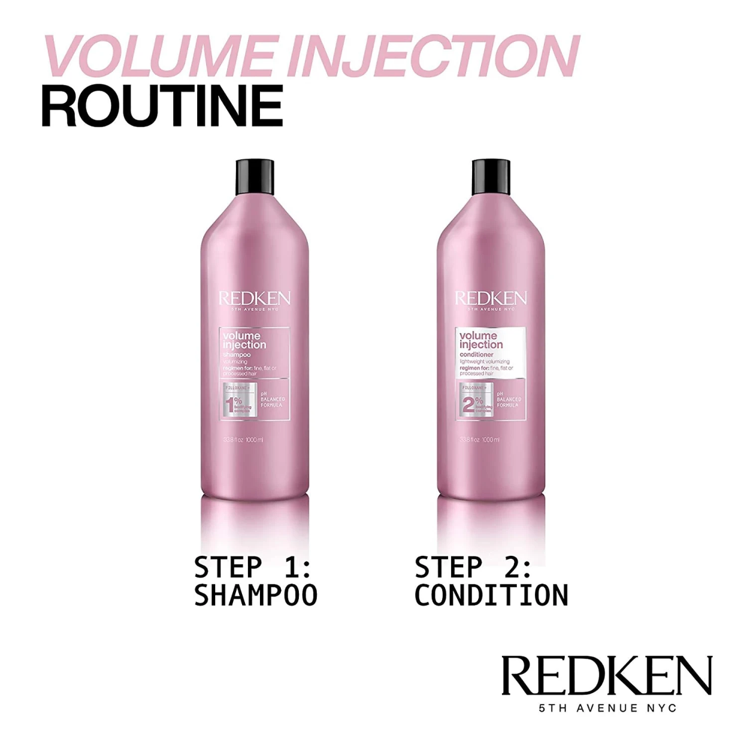 Redken’s Volume Injection Conditioner is a volumizing, lightweight conditioner that creates lift and body. It provides weightless volume and leaves hair with a soft, shiny finish. Targets damaged hair to prevent hair breakage while creating movement and enhancing body. Activates root lift for full scalp care and maximum volume. Polished finish.