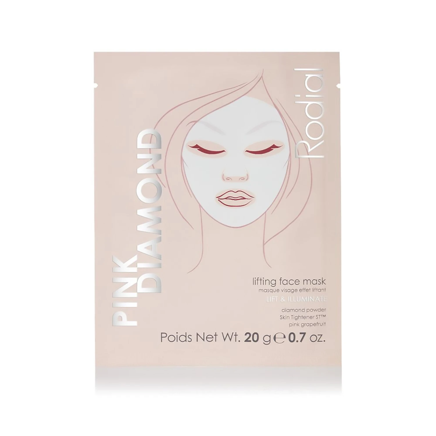 The Pink Diamond Instant Lifting Face Mask is the ultimate indulgent pamper experience to prep the skin for a big event or a luxe pamper in with friends. Inspired by the trend in sheet masks led by Korea, this innovative bio-cellulose face mask acts like a cooling second skin, whilst the fibres instantly lock moisture into the skin and enables a deeper penetration of our formula. Infused with pink grapefruit, diamond powder and skin-tightening peptides, this mask works to instantly lift, tighten and brighten skin for a more youthful looking, radiant complexion with lifted facial contours.