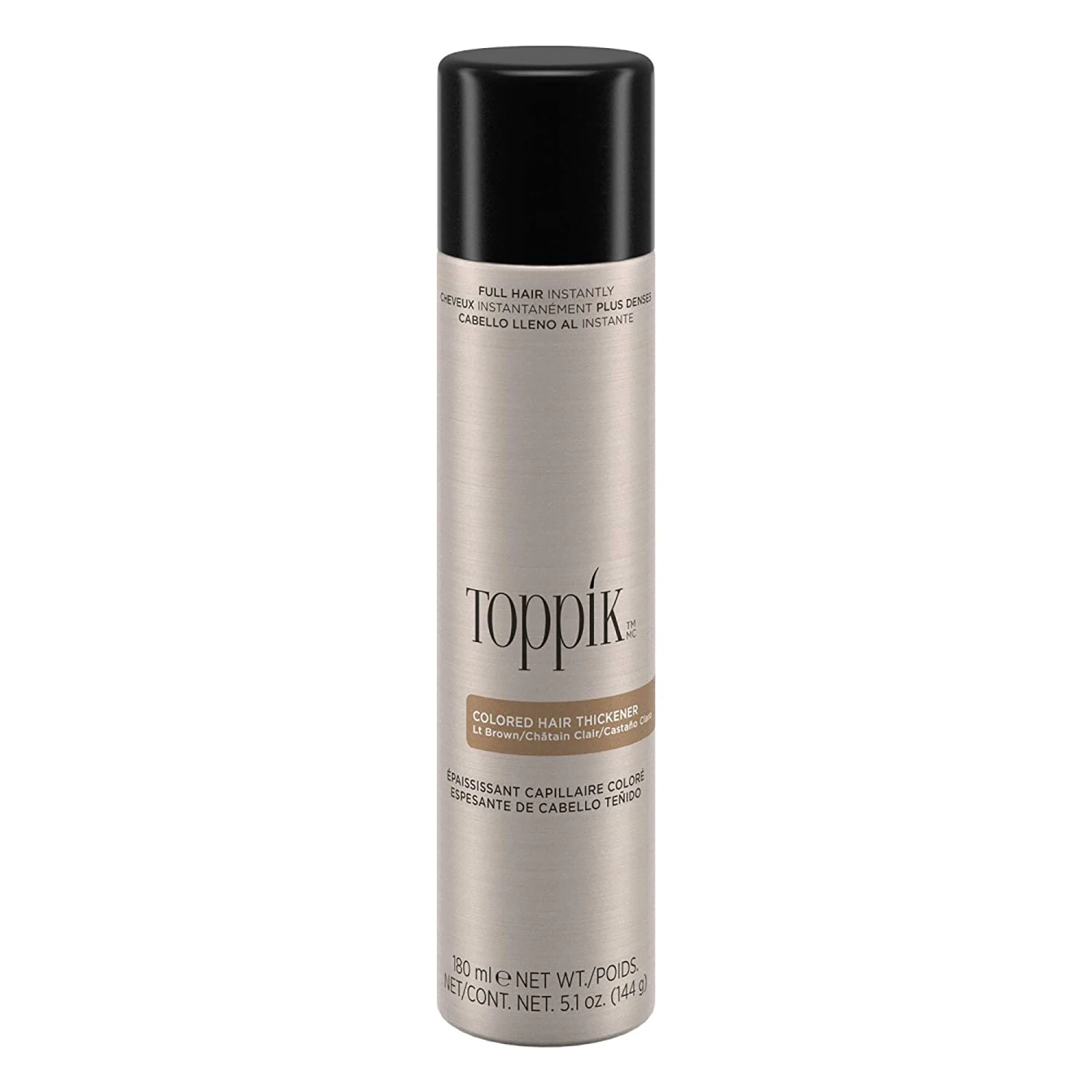 Colored Hair Thickener from Toppik is an innovative color spray solution that instantly fills in thinning areas, gives you the appearance of fuller, thicker hair and is gentle on your scalp. It’s recommended to cover wider areas of thinning, scalp show-through even bald spots as well as a root touch up between color appointments in 4 shades that resist wind, rain and perspiration.