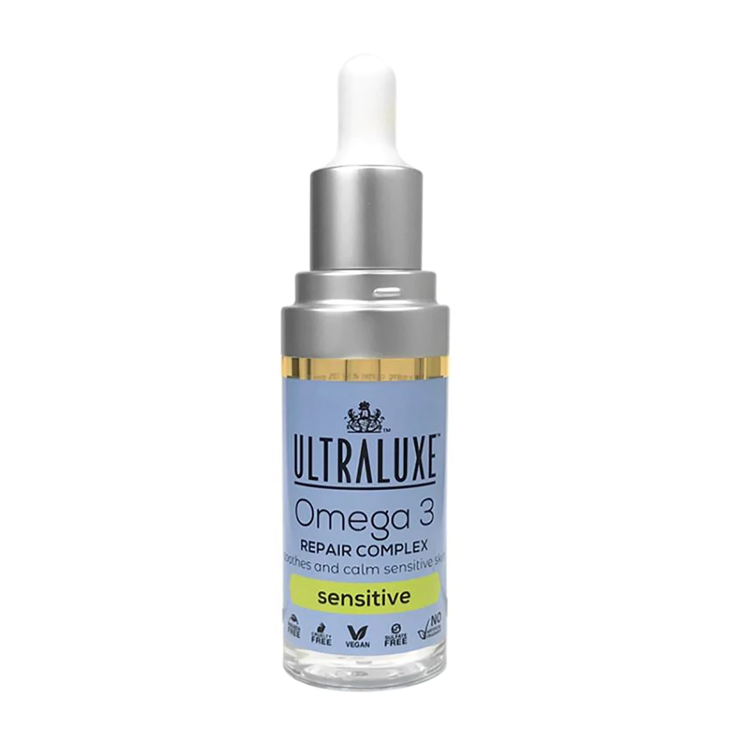 UltraLuxe Omega-3 Repair Complex – Sensitive (formerly Omega-3 Repair Complex – Irritation) nourishes and repairs skin from the inside out with natural omegas 3 and 6. Bergamot and chamomile extracts soothe and calm irritation by providing instant relief from itching and redness. The oil replenishes moisture and improves the tone and texture of your skin. Ideal for use on post-facial procedures, rosacea or eczema.