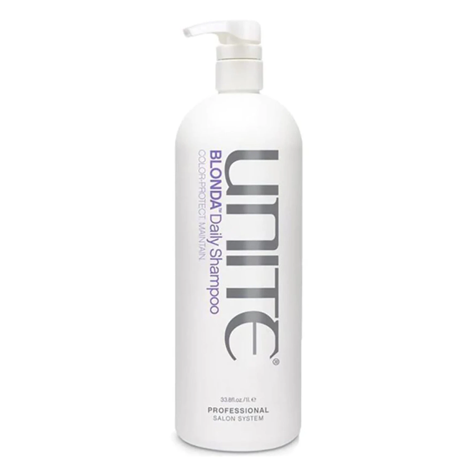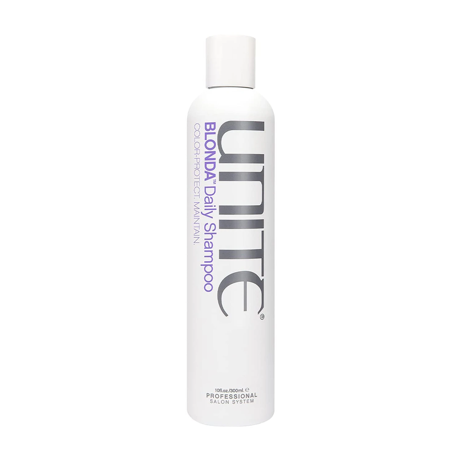 Unite Blonda Daily Shampoo is a sulfate-free daily shampoo that gently cleanses and helps maintain blonde hair and highlights. This rich and creamy daily shampoo helps soothes the scalp while gently cleansing hair without stripping color for dulling highlights. Formulated with coconut to gently cleanse and balance, while chamomile helps calm and restores. Hair is left clean, refreshed, and bighted.