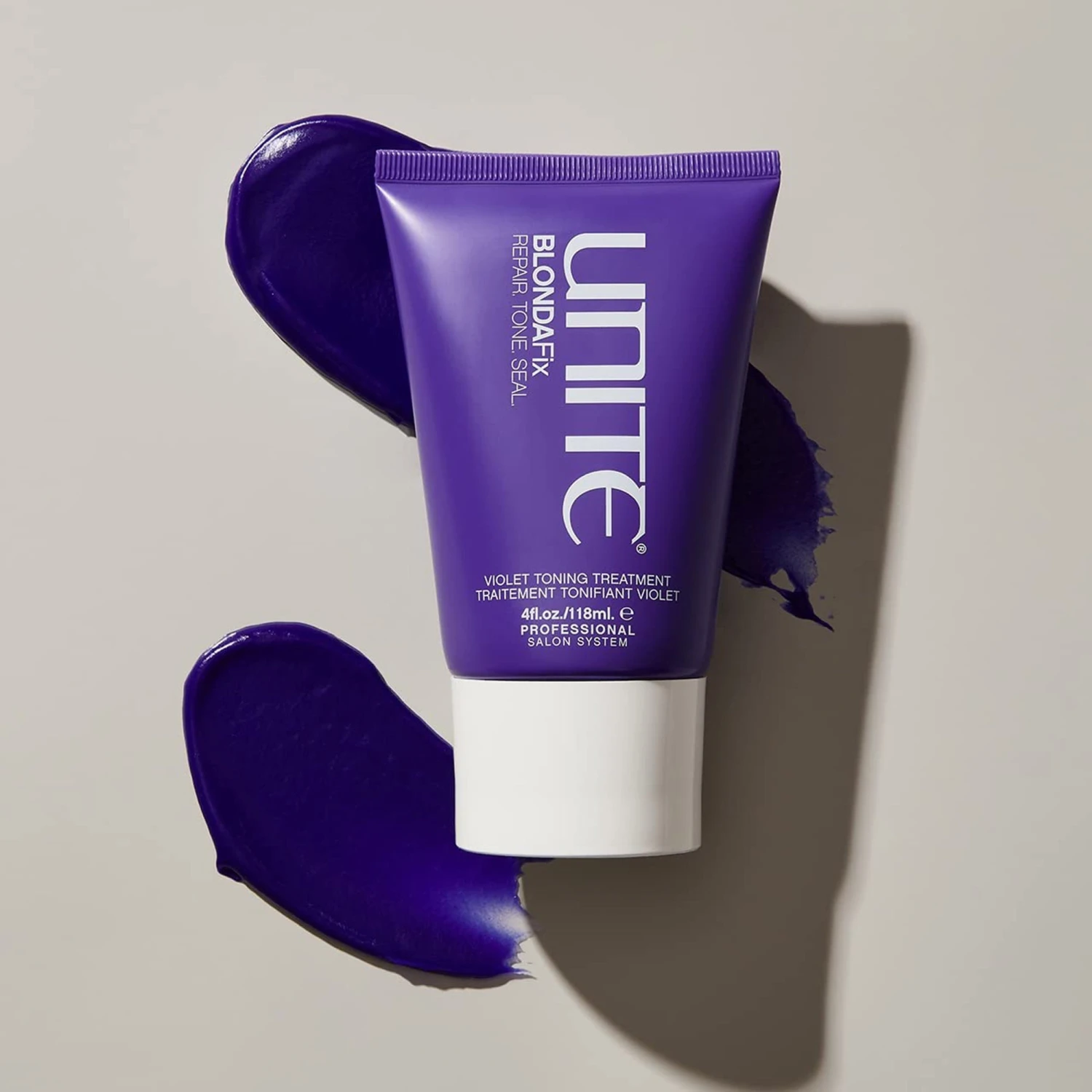 Unite Blonda Fix Treatment is a deeply reparative toning treatment designed to help repair, strengthen and tone brassy blonde hair. This all-in-one formula not only helps strengthen and repair, but also helps tone and brighten hair. Formulated with MiruStyle X-HP, Silsoft AX, Panthenol and Phospholipids to help hair with color retention and to help prevent future chemical, thermal and mechanical damage. Paraben-free, sulfate-free, Vegan.