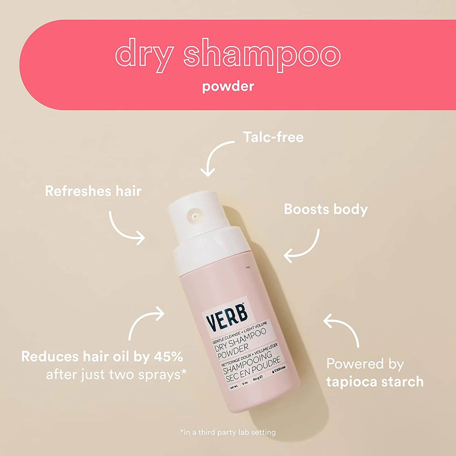 Verb’s Dry Shampoo Powder refreshes hair, removes excess oil, boosts body and helps prevent damage from washing and styling. Redesigned with a new and easy applicator, this talc-free formula absorbs impurities and re-energizes your look on the spot. Refreshes hair. Removes excess oil. Boosts body.
