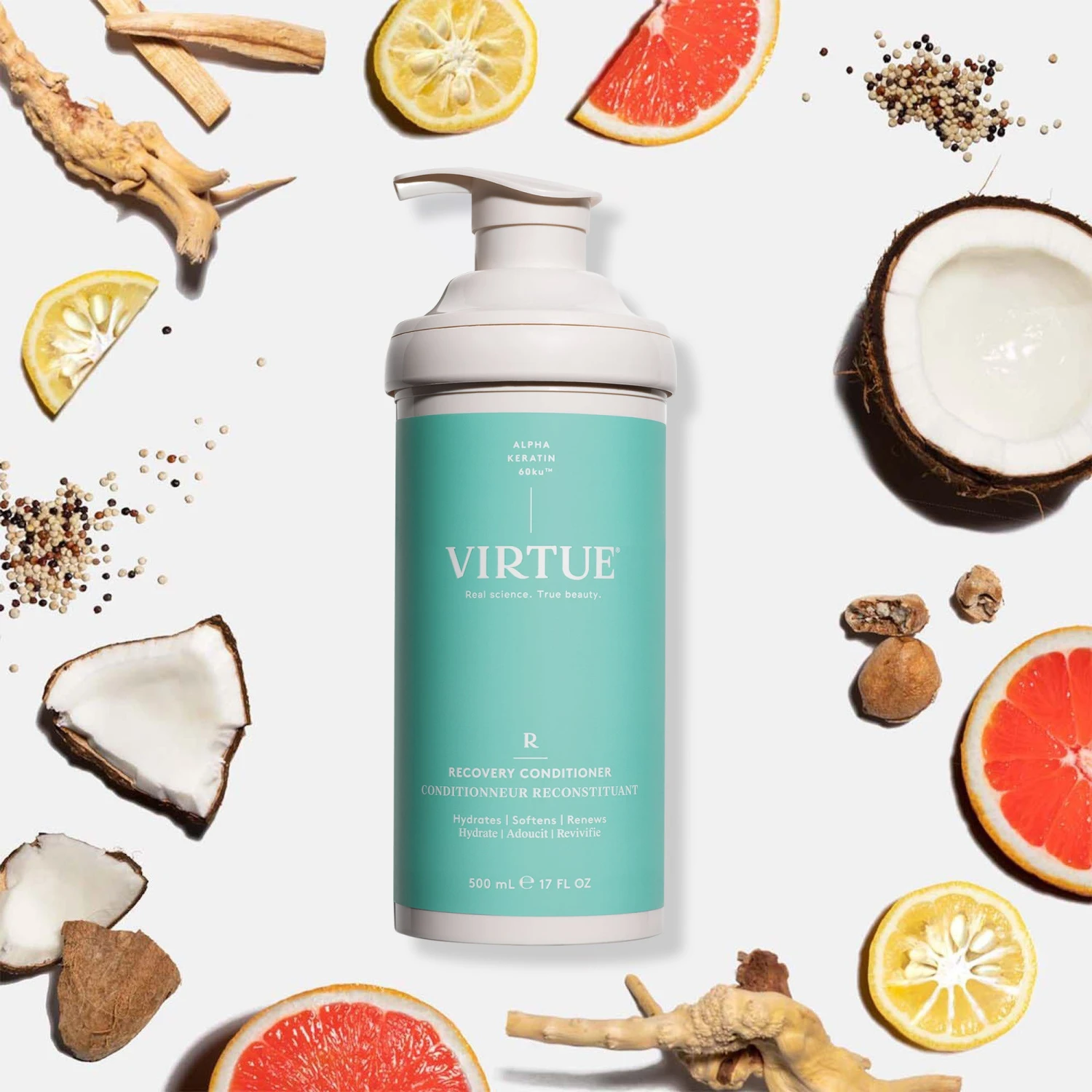 Virtue Labs Recovery Conditioner is a rich, luxurious conditioner that repairs damaged hair. It reconstructs frayed cuticles and brittle ends, infusing hair with softness, shine, and manageability. This conditioner behaves like a high-powered treatment product that helps fills in cracks in the cuticle of hair and protect damage from heat, chemicals, and color treatment. Color-safe, paraben-free, gluten-free. Vegan.
