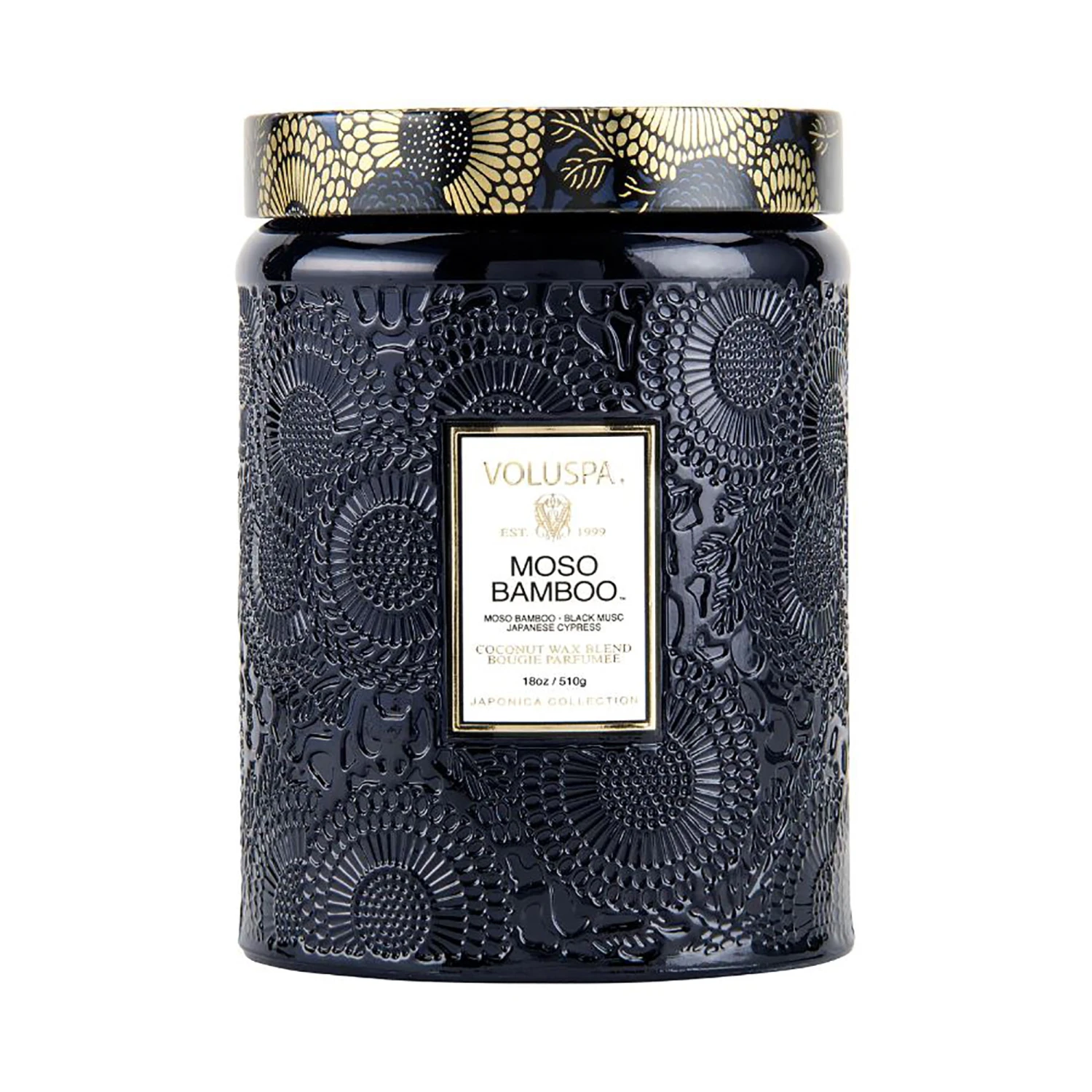 Our classic embossed glass jar design gets an update with discerning Japanese inspiration. Beautiful hues glimmer as the flame illuminates delicate embossing. You’ll love using the jar for jewelry, flowers or decor long after the candle is gone.