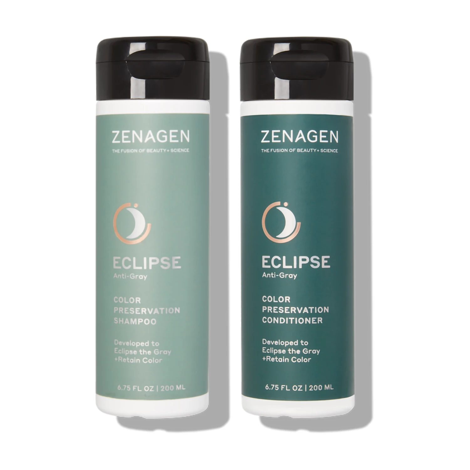 Say goodbye to gray hair and hello to healthier, more vibrant locks with the Zenagen Eclipse Anti-Gray Color Preservation Shampoo and Conditioner Duo. Experience the power of nature and let your hair shine with confidence.